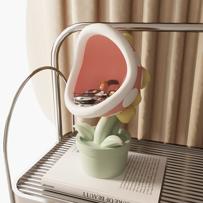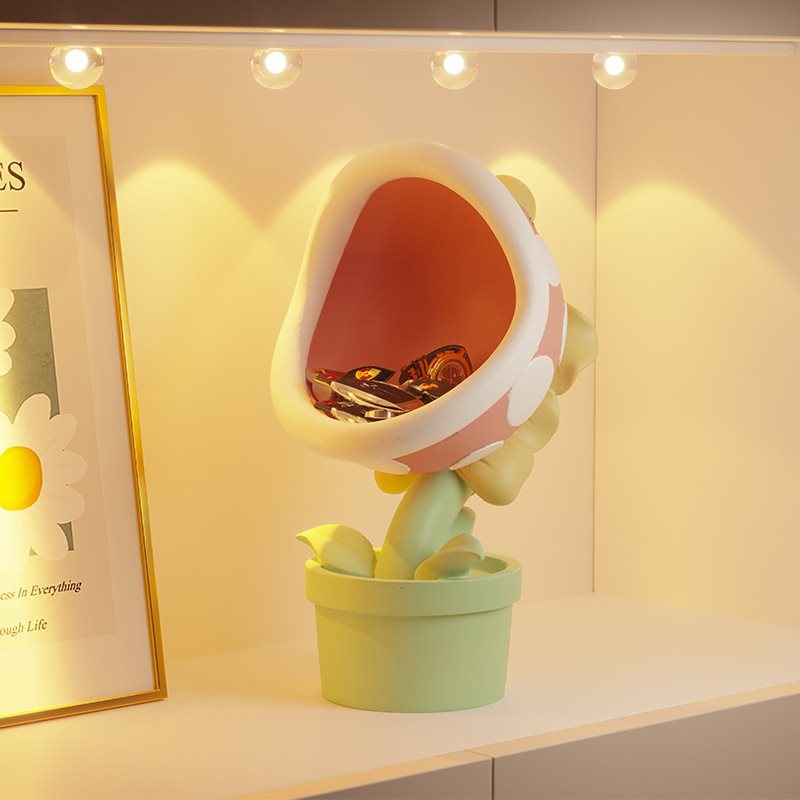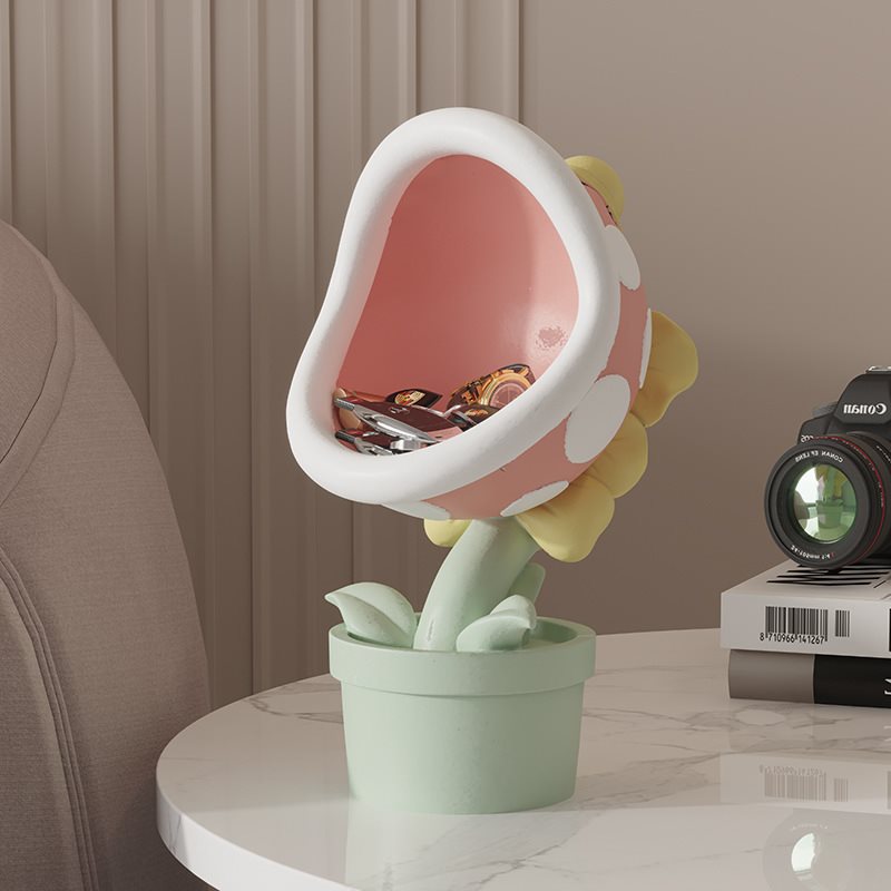 卡通奶油风大嘴花客厅桌面玄关进门入户钥匙收纳装饰品食人花摆件