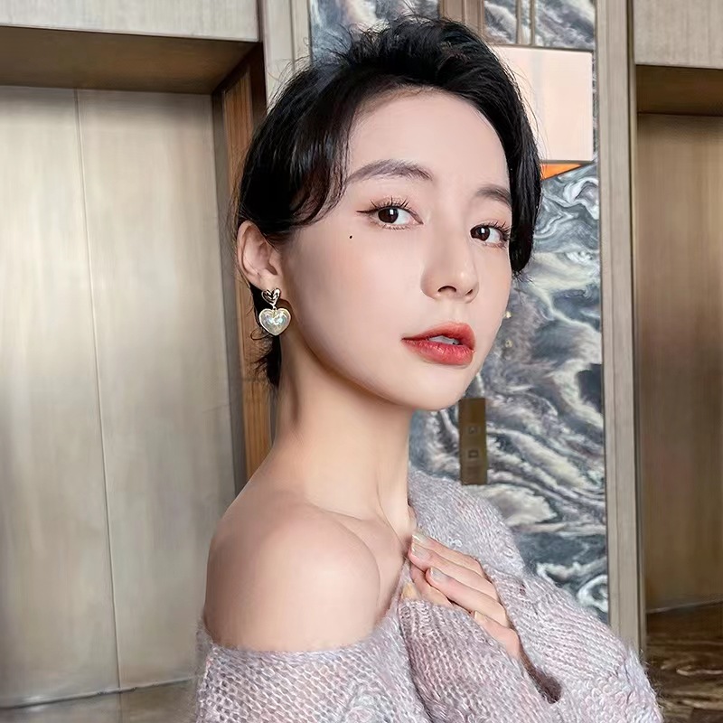小众设计高级感人鱼姬珍珠爱心耳环925银针百搭桃心耳钉耳饰女潮