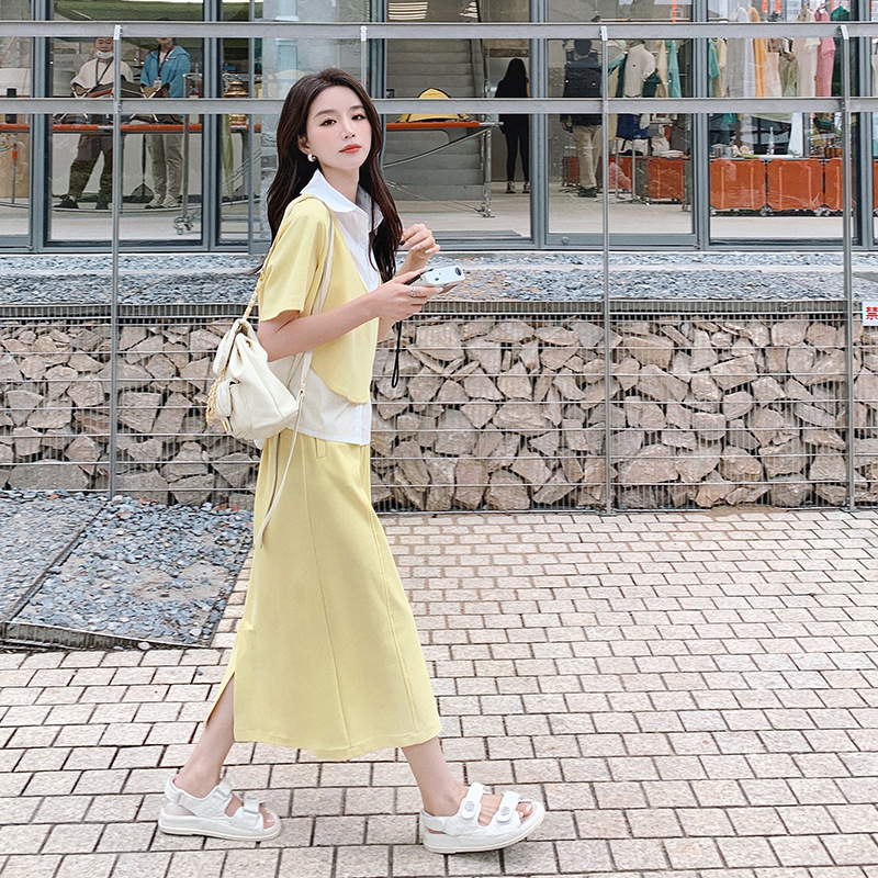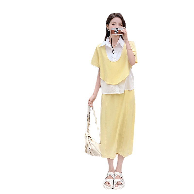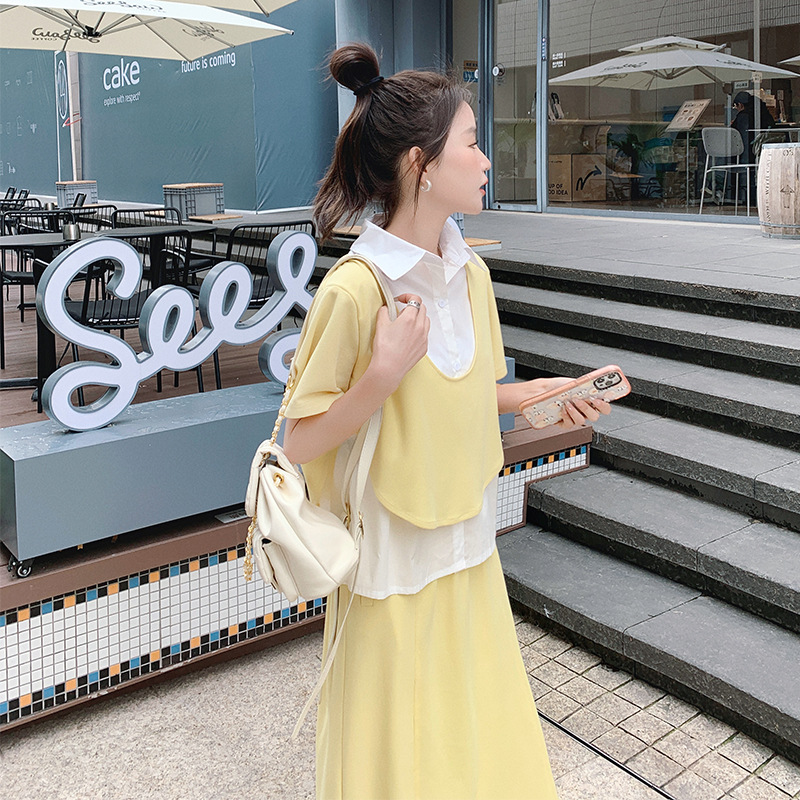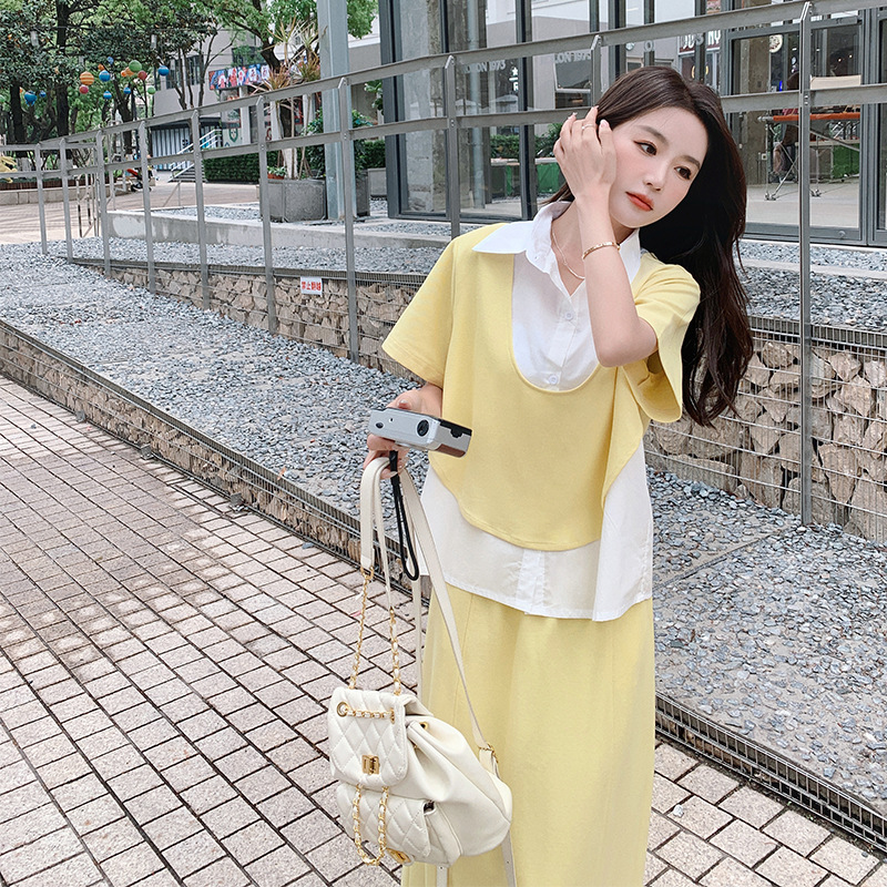 韩版宽松半身裙套装夏季女新款高级感网红爆款假两件套装裙子