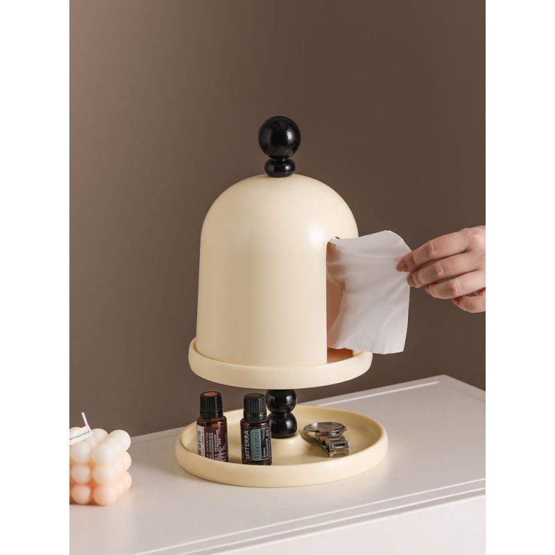 纸巾盒创意家用桌面摆件餐桌装饰收纳抽纸盒 客厅主卧 简约奶油风