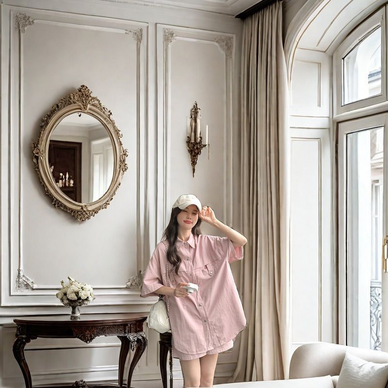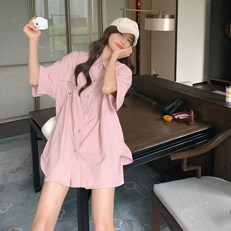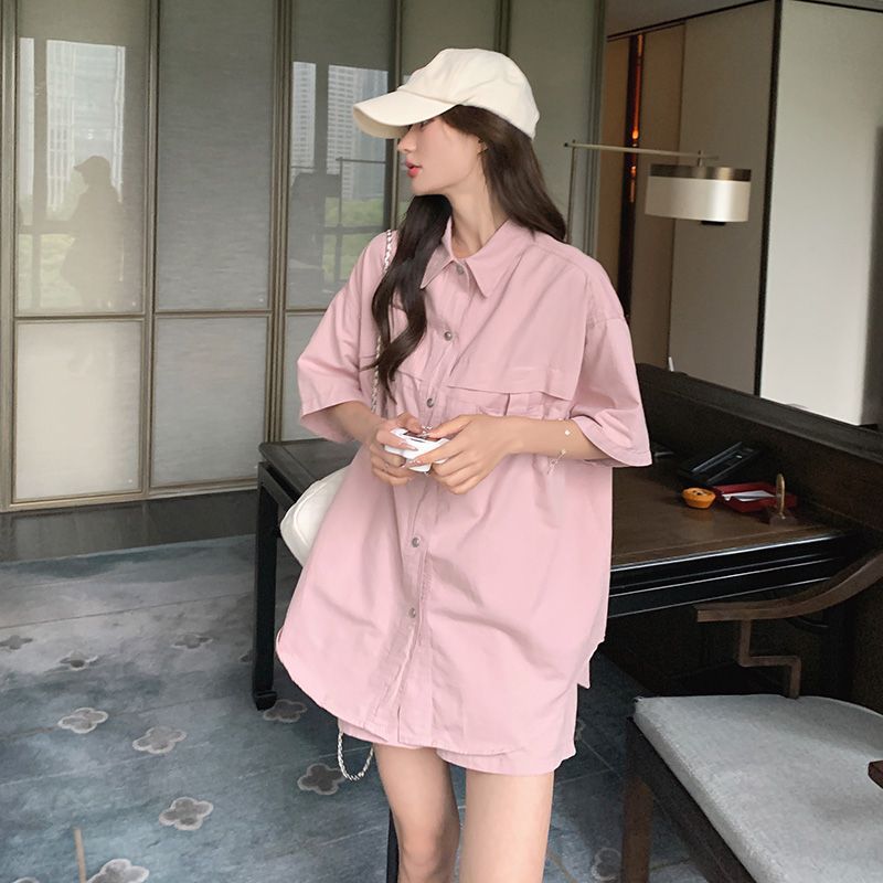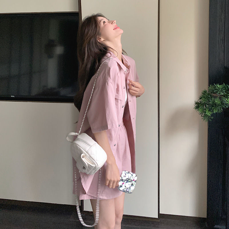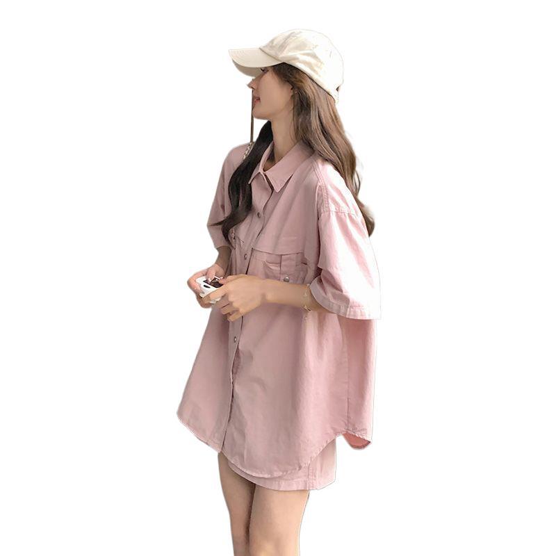 新款休闲短袖衬衫短裤两件套洗水棉宽松外套工装夏季时尚套装