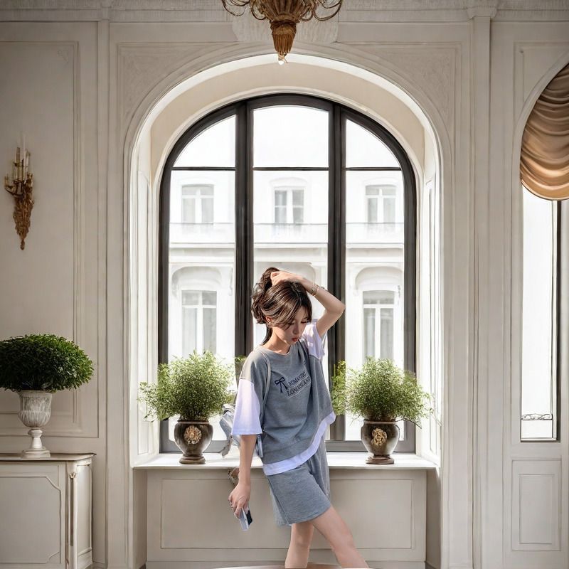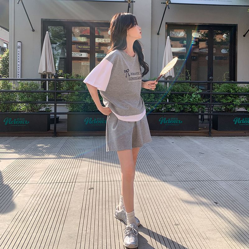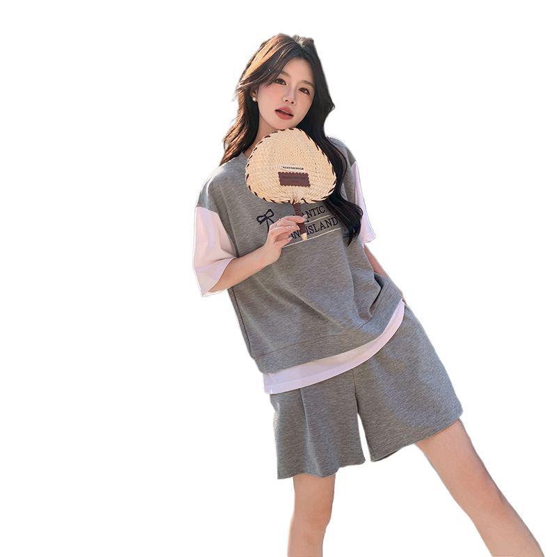 夏季休闲运动套装女新款时尚户外跑步登山短袖T恤短裤两件套