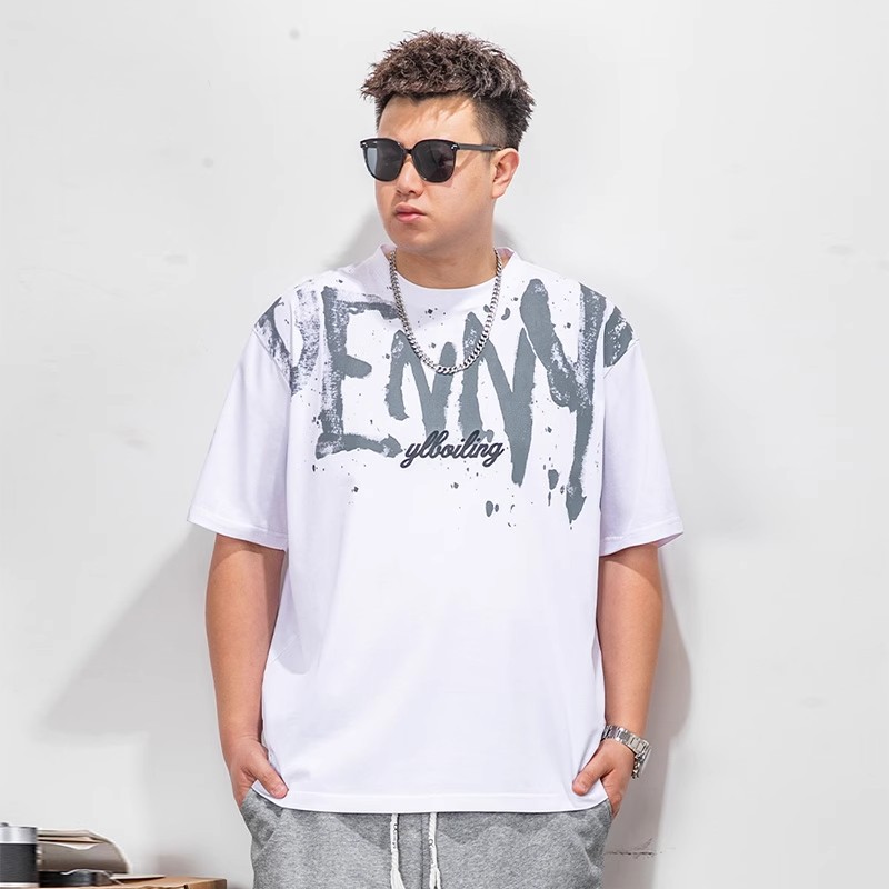 潮牌大码圆领短袖t恤男宽松潮流胖子加肥加大夏季休闲半袖体恤衫