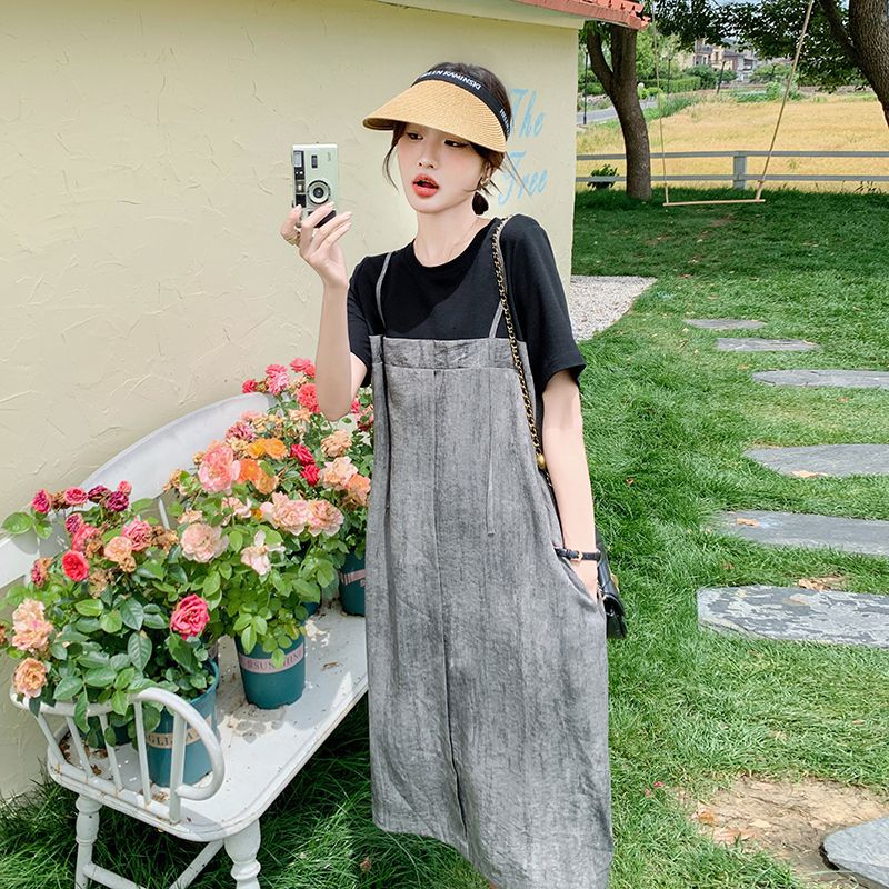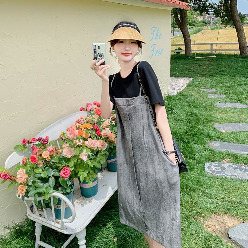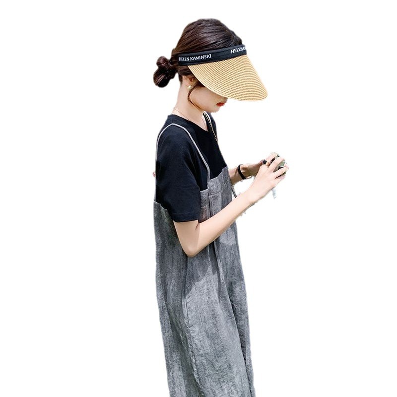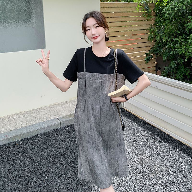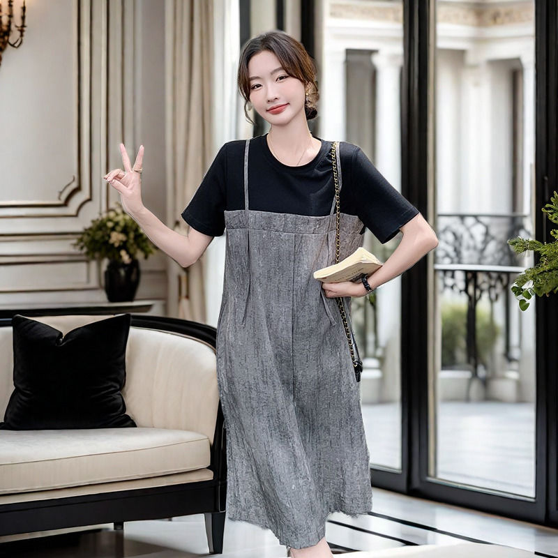 时尚气质假两件水墨晕染连衣裙夏季新款撞色拼接显瘦小个裙子