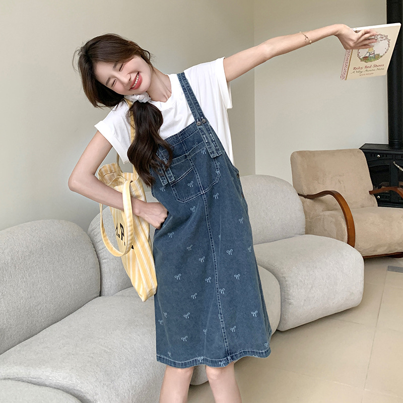 洋气减龄牛仔背带裙套装女夏季新款小个子学院风连衣裙两件套