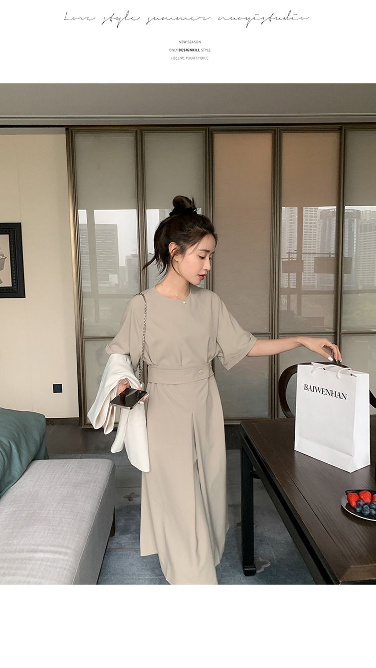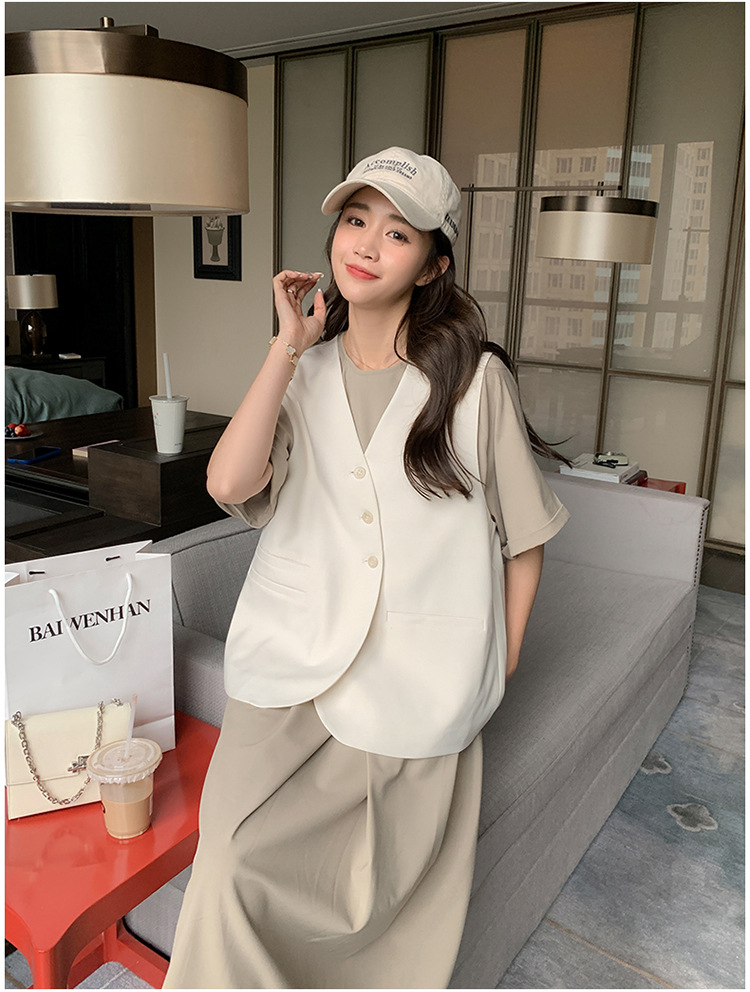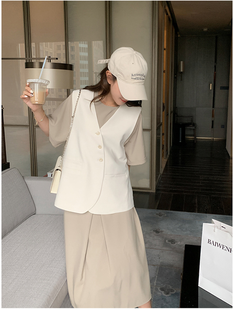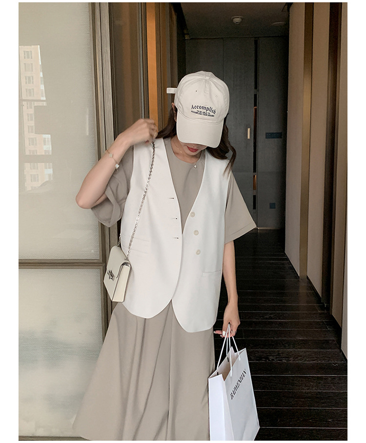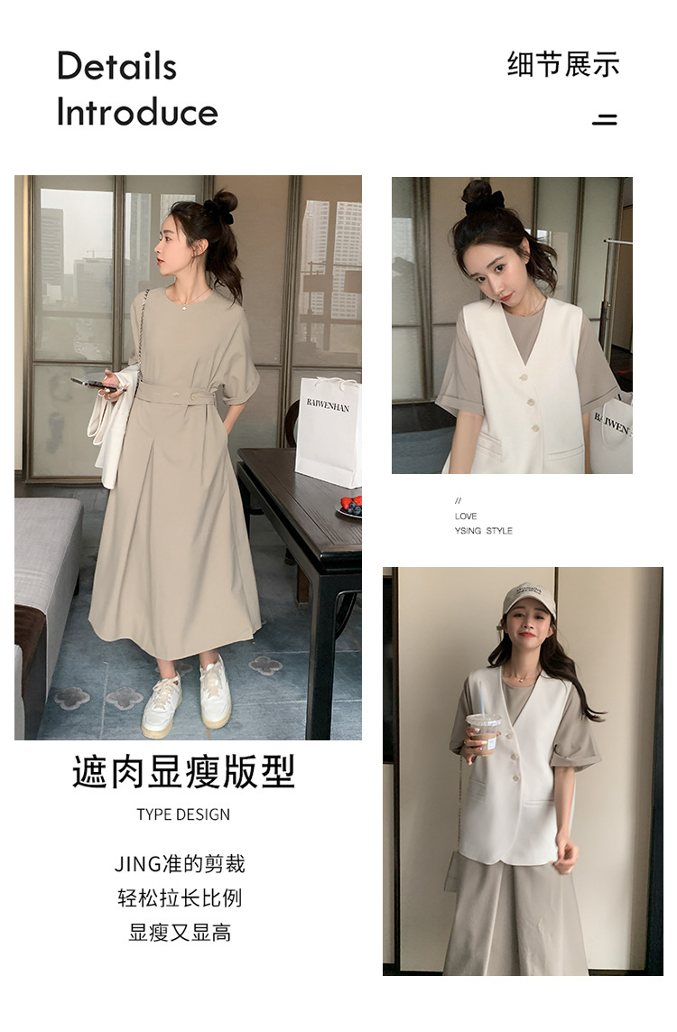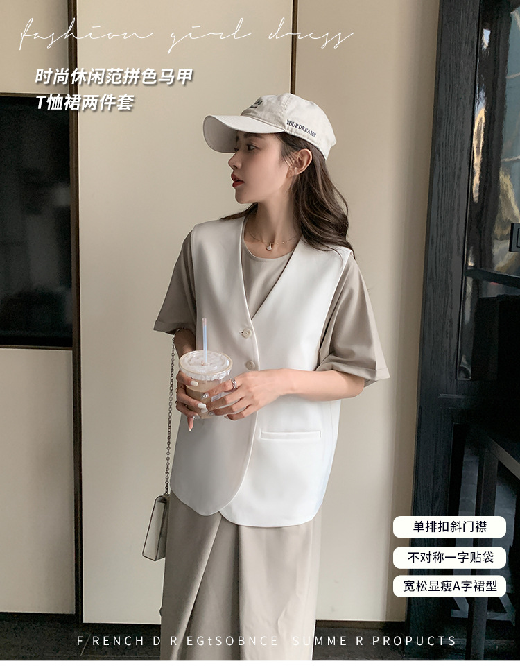 马甲连衣裙套装女夏新款法式休闲宽松灰色收腰T恤裙子两件套