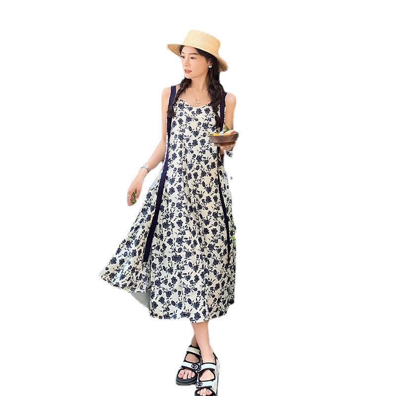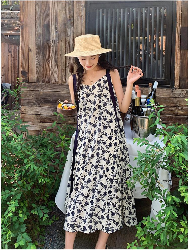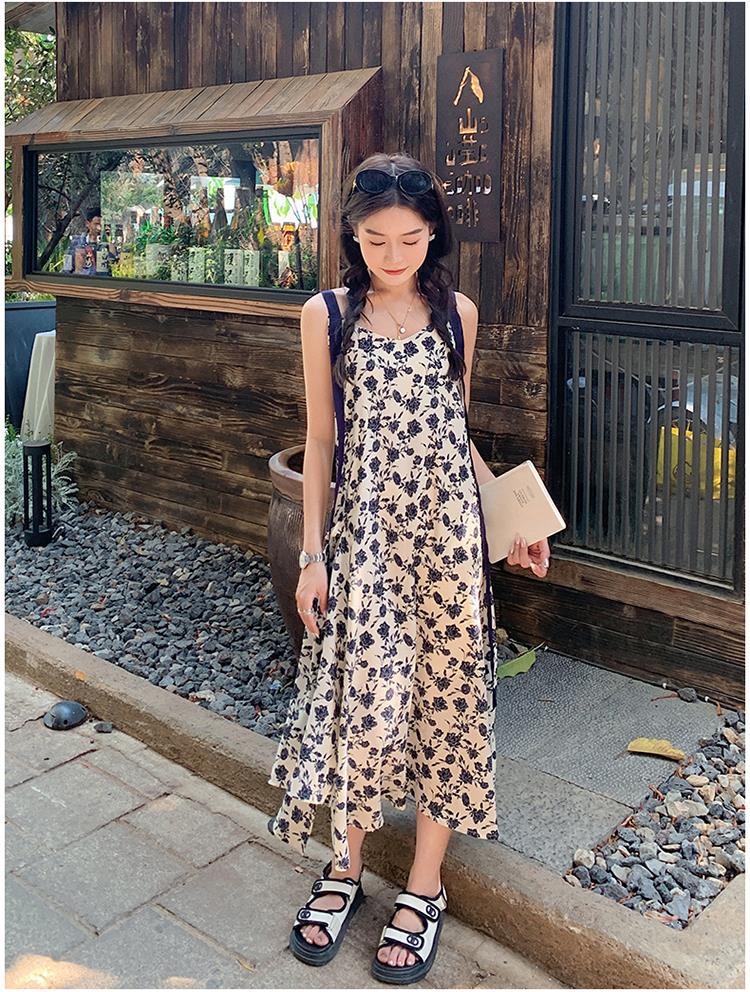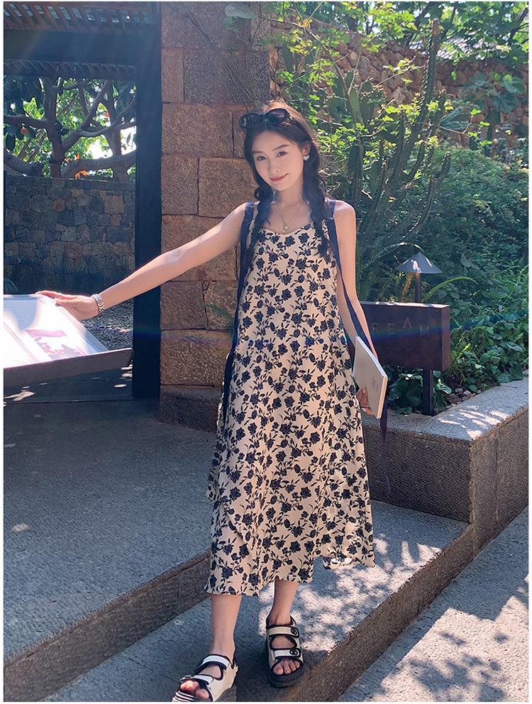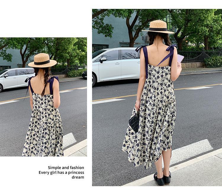 法式复古碎花吊带裙女夏新款宽松减龄小个子设计感飘带连衣裙