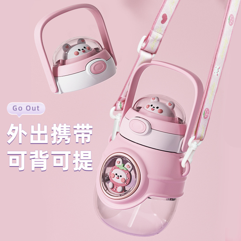 双公仔创意吸管杯高颜值便捷背带儿童水杯太空舱大容量水杯