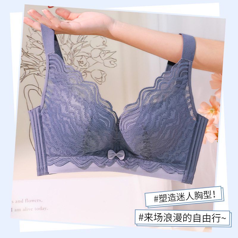 内衣女蕾丝无钢圈大胸显小薄款透气全罩杯聚拢调整型收副乳文胸