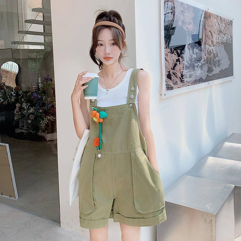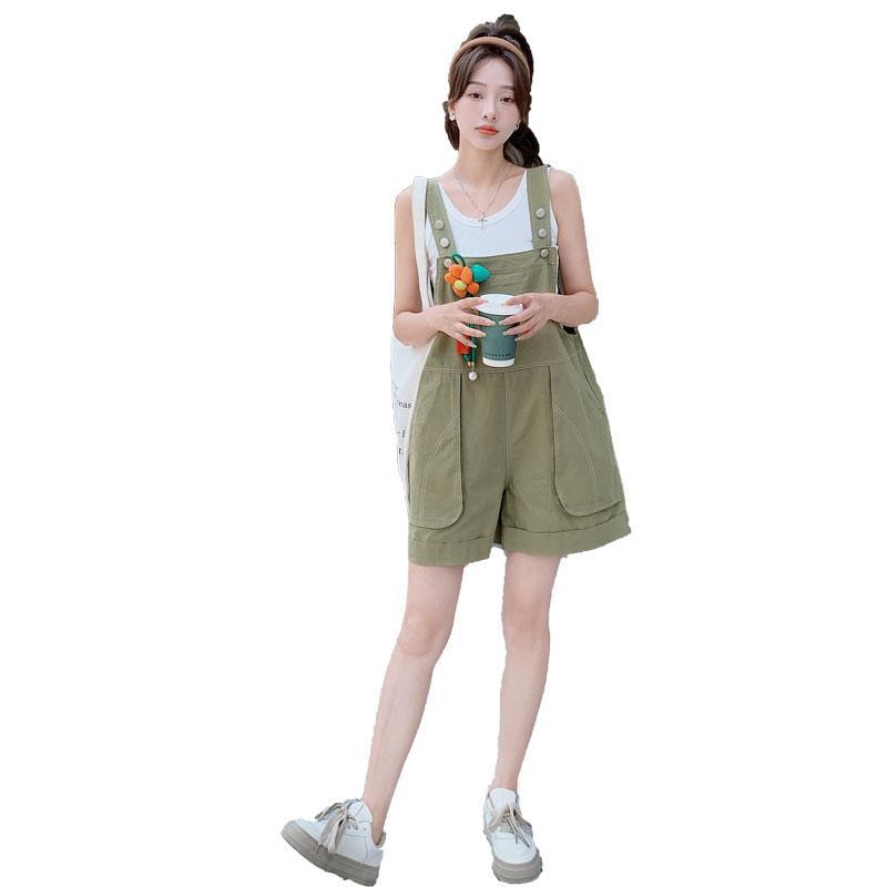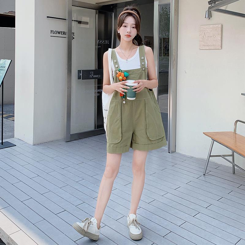 工装背带裤女夏季薄款高腰显瘦休闲宽松直筒百搭减龄小个子短裤子