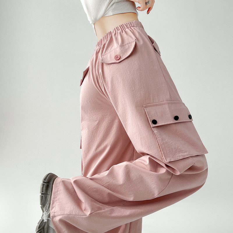 美式复古多袋工装裤女夏季新款两穿裤脚高腰休闲运动宽松阔腿裤子