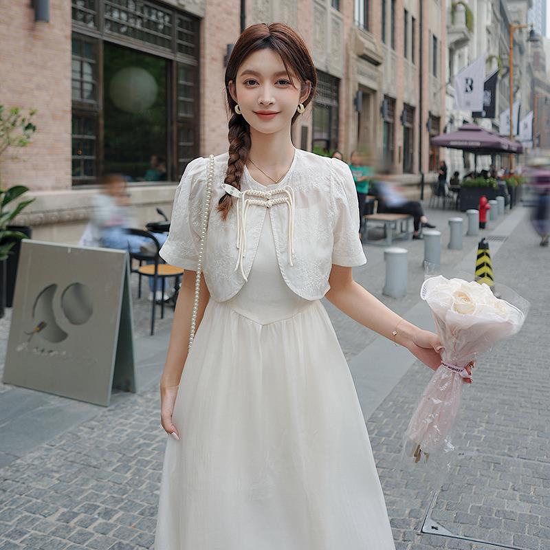 新中式国风连衣裙套装女夏季新款设计感盘扣外搭吊带裙两件套