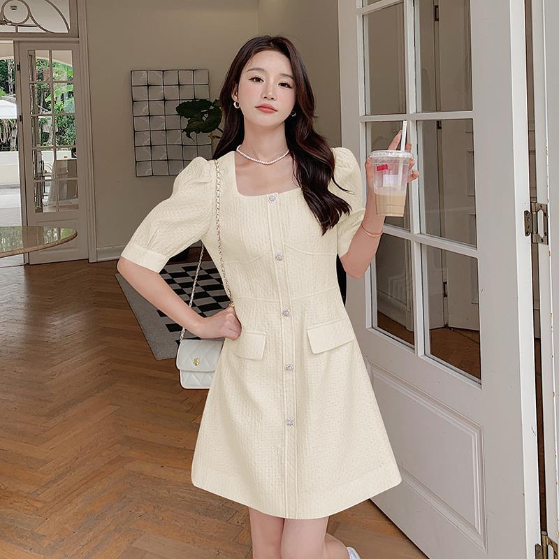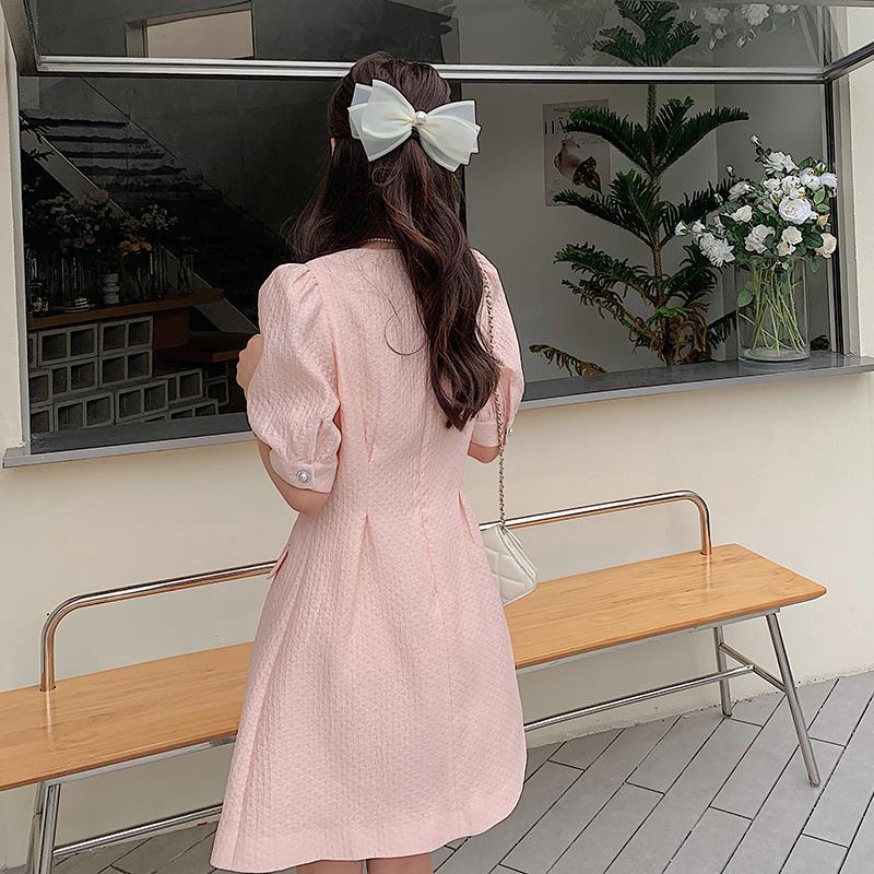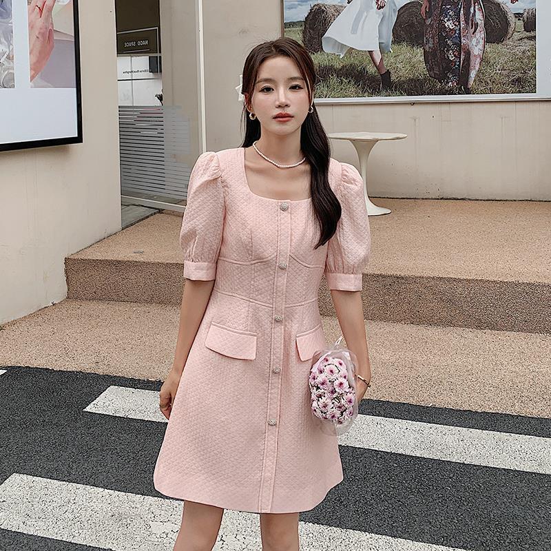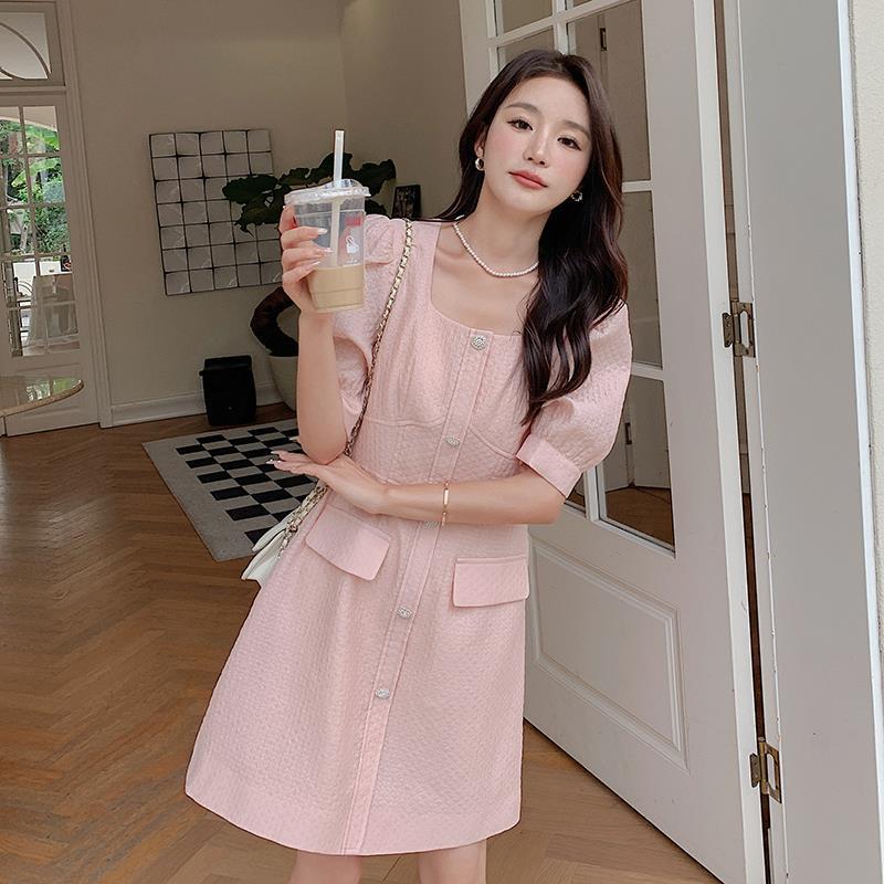 粉色小香风连衣裙女夏气质精致轻奢高级感端庄大气方领显瘦a字裙