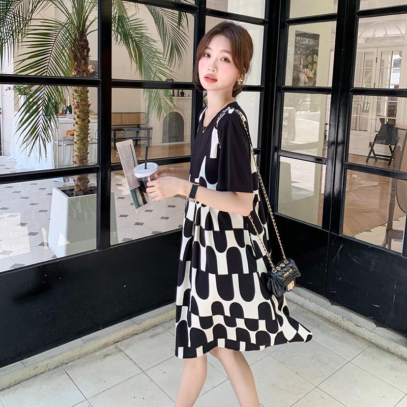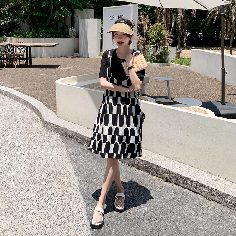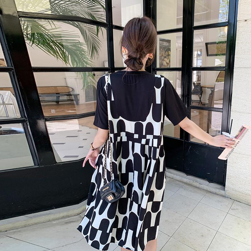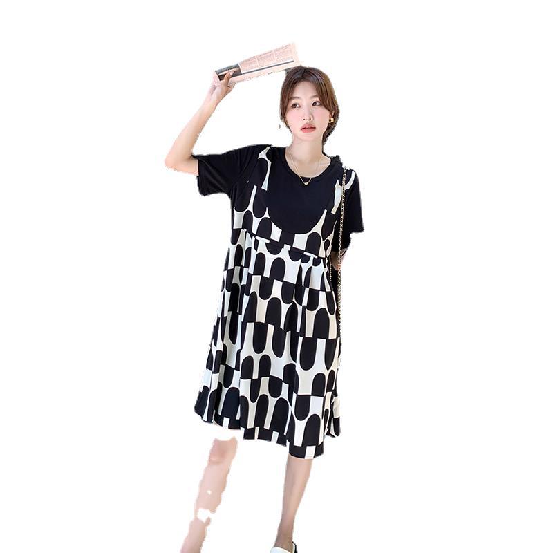 假两件连衣裙女年夏季新款小众设计感遮肉显瘦撞色印花小裙子