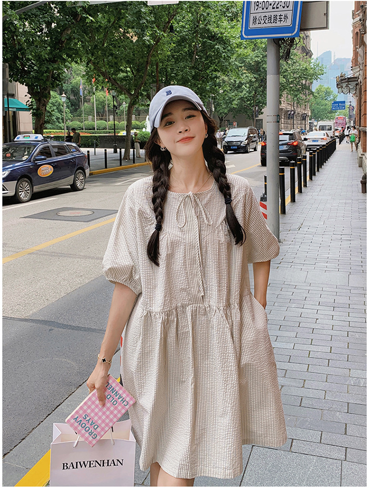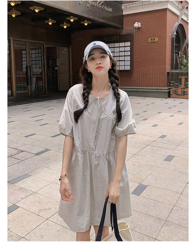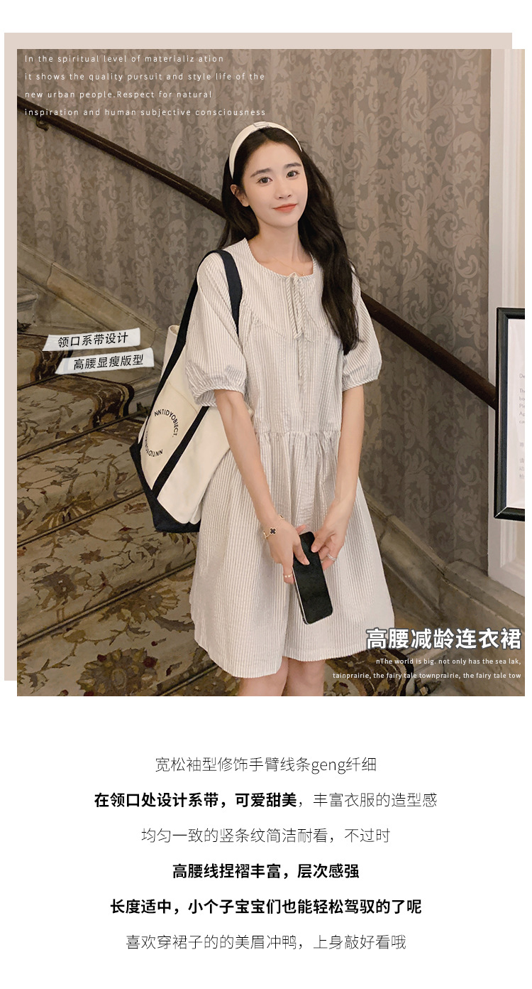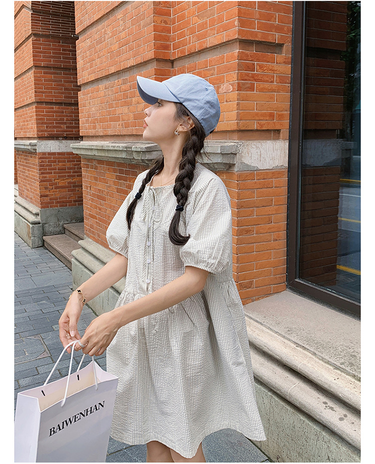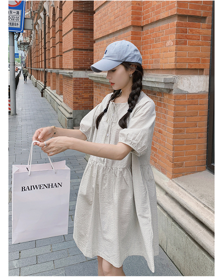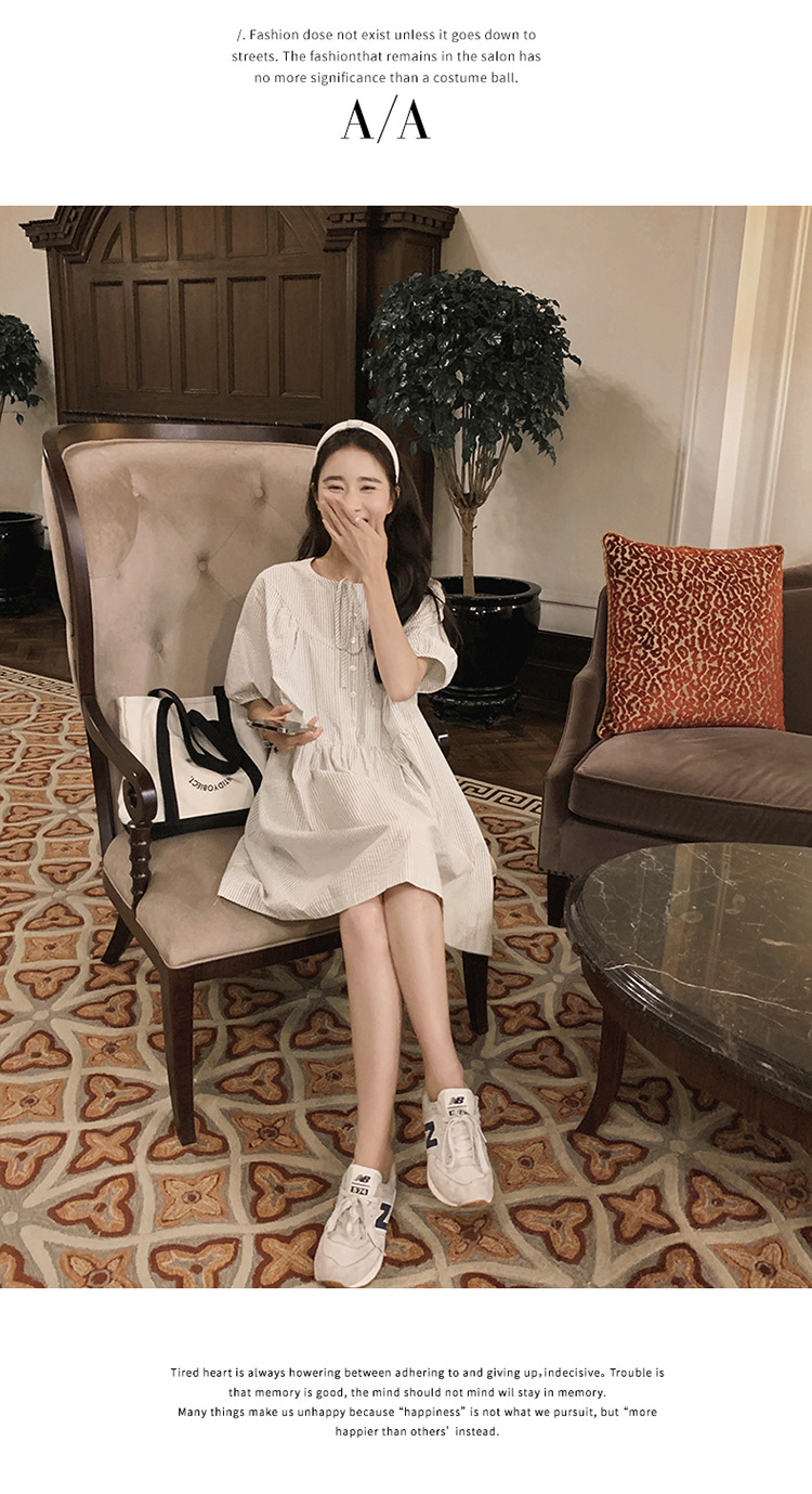 法式条纹裙子系带宽松娃娃裙连衣裙女装韩国东大门夏季新款
