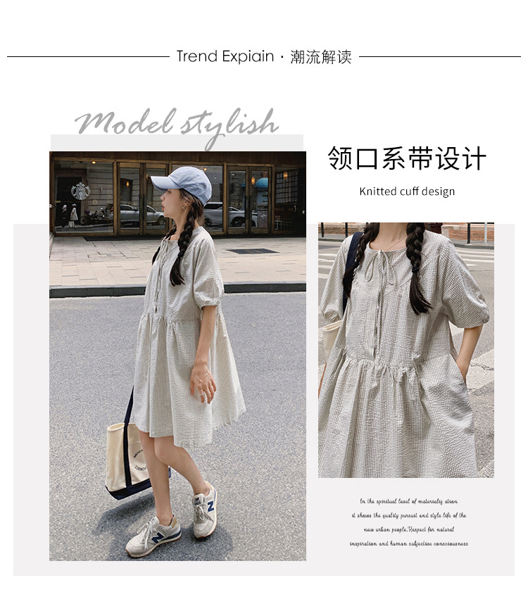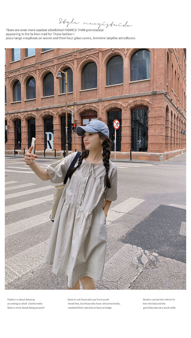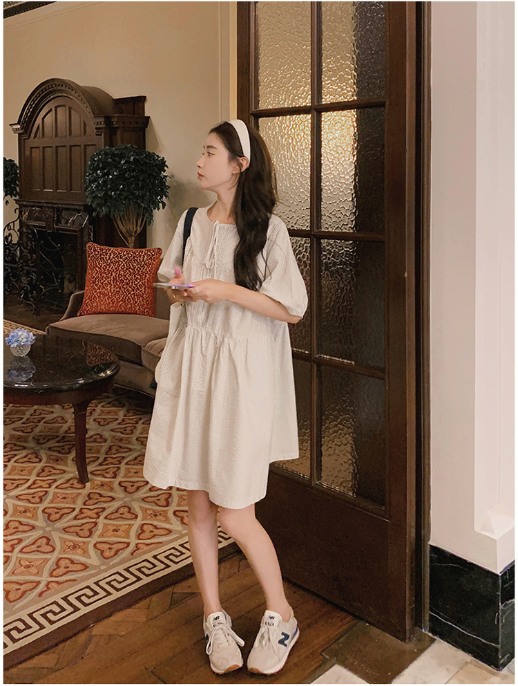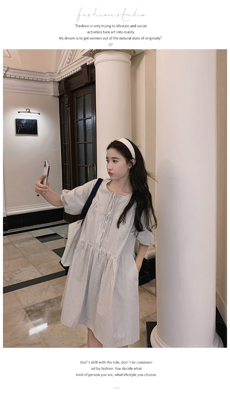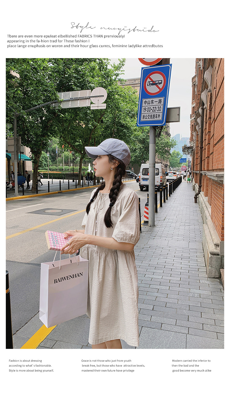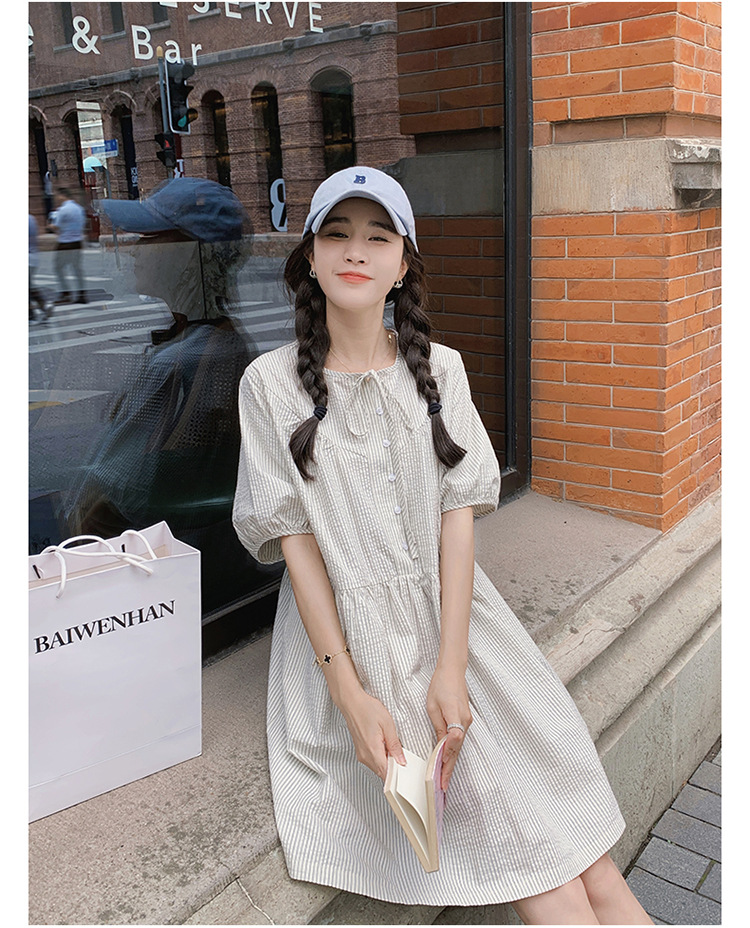 法式条纹裙子系带宽松娃娃裙连衣裙女装韩国东大门夏季新款