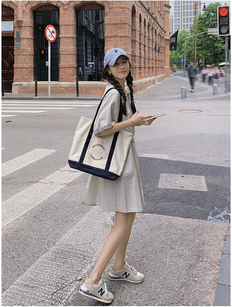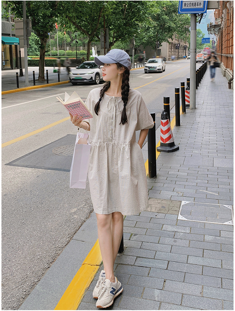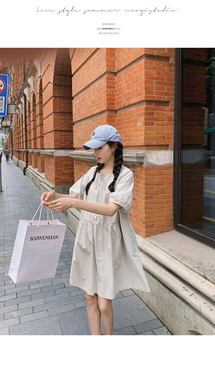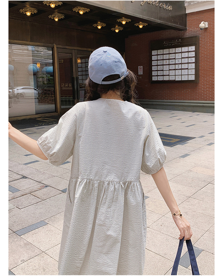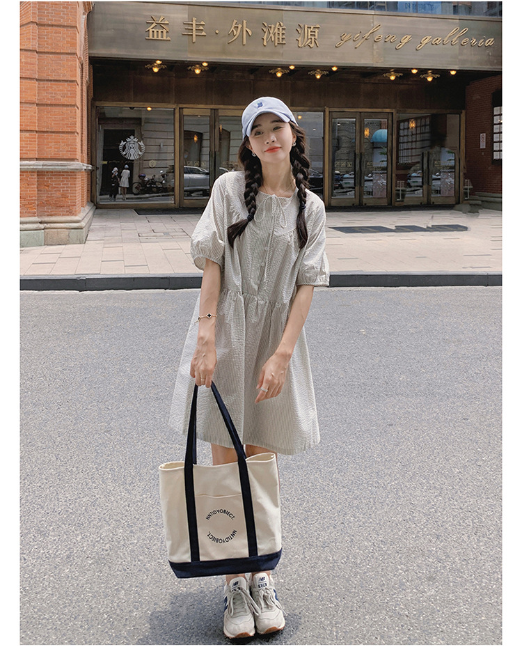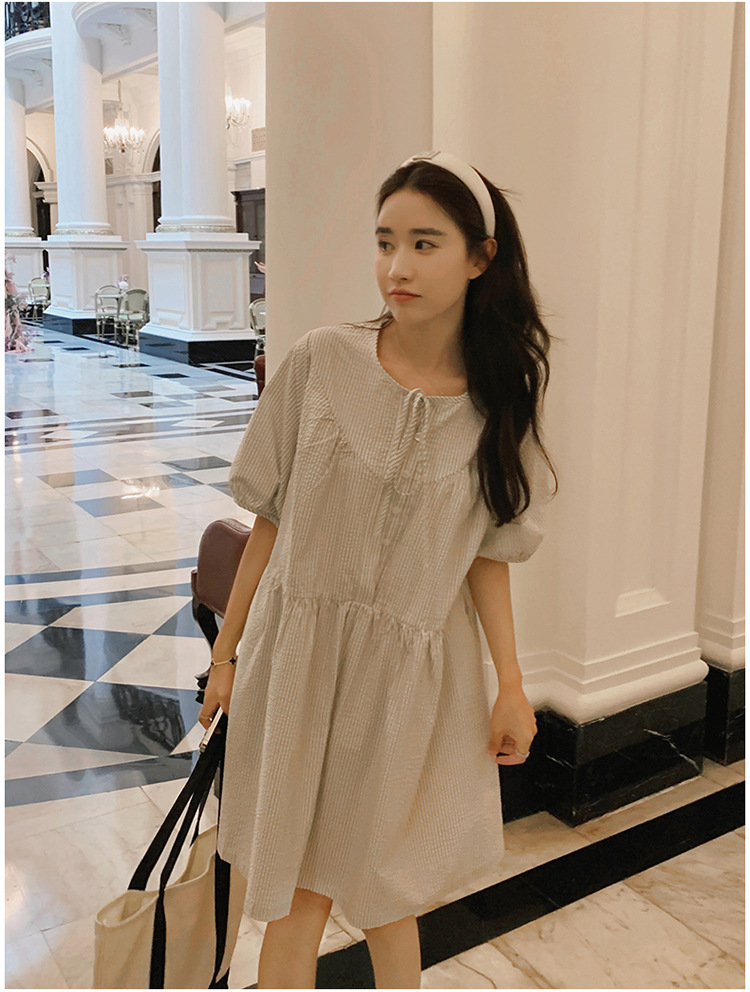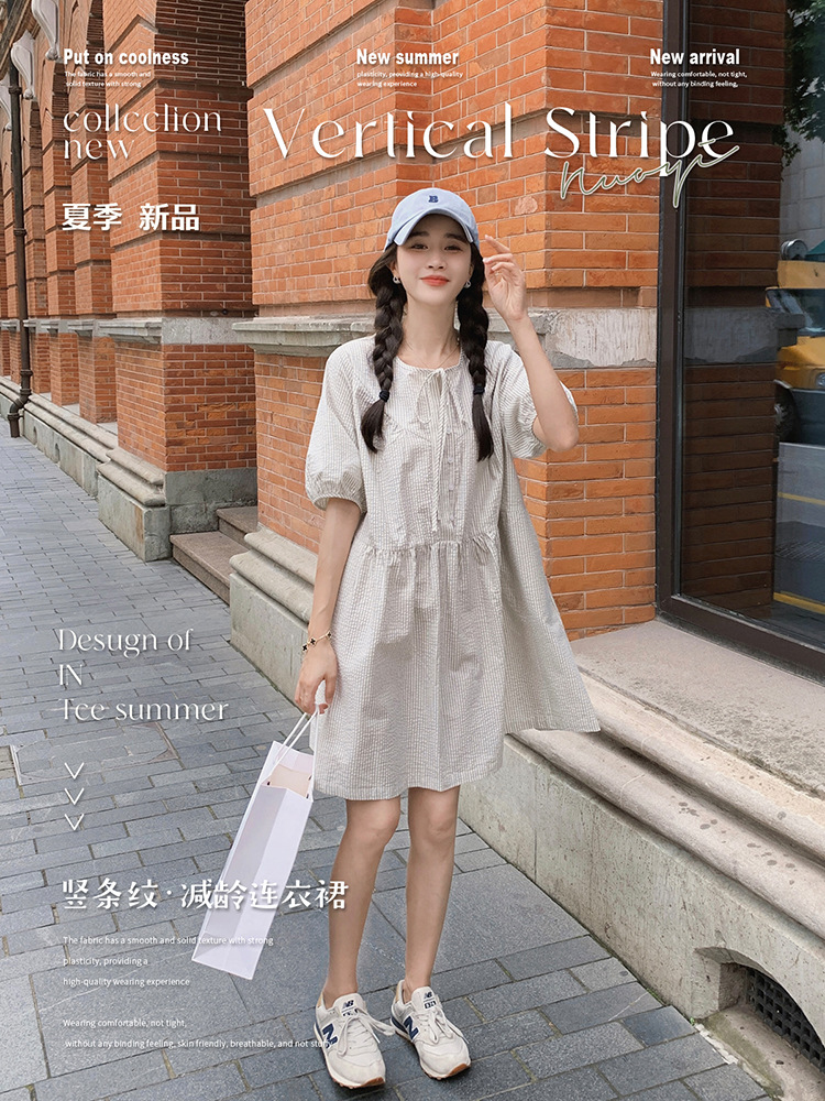 法式条纹裙子系带宽松娃娃裙连衣裙女装韩国东大门夏季新款