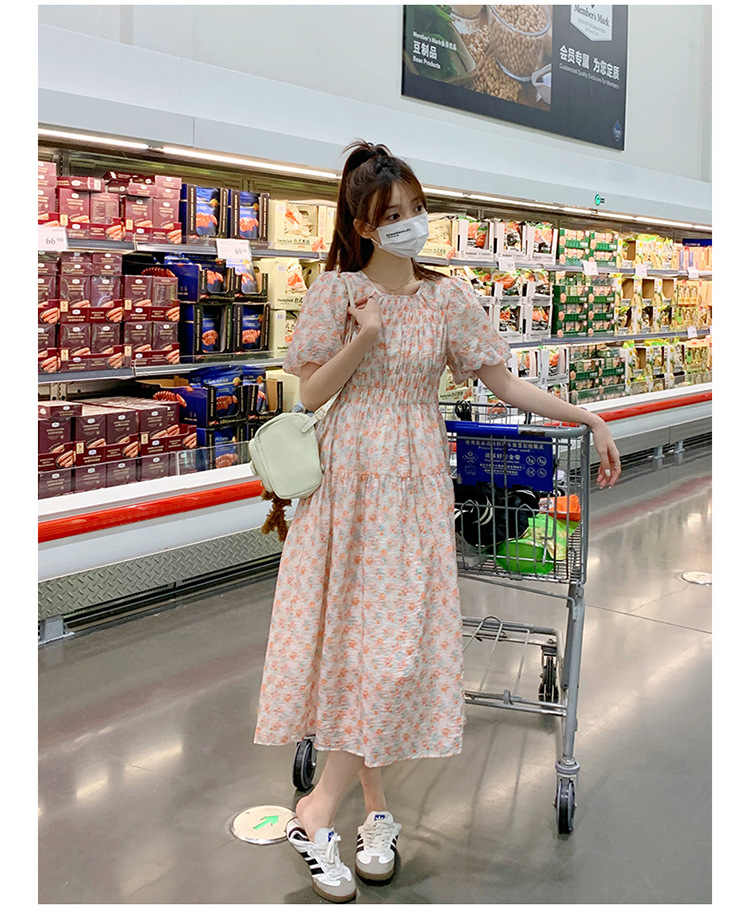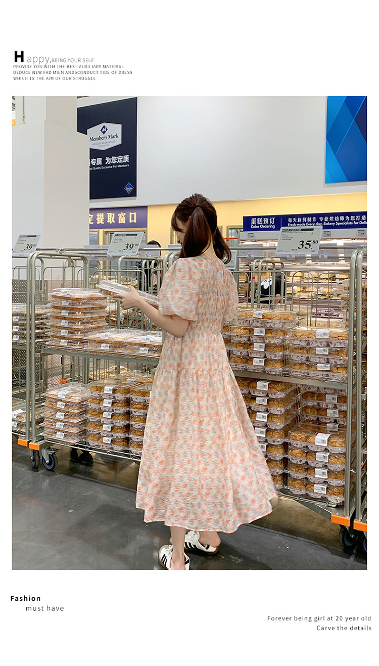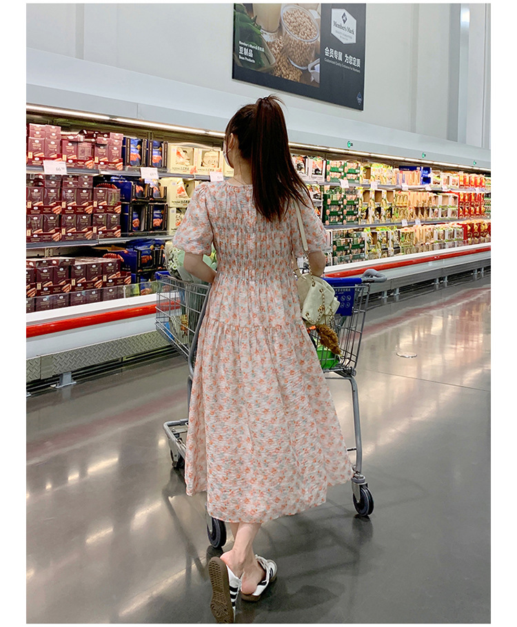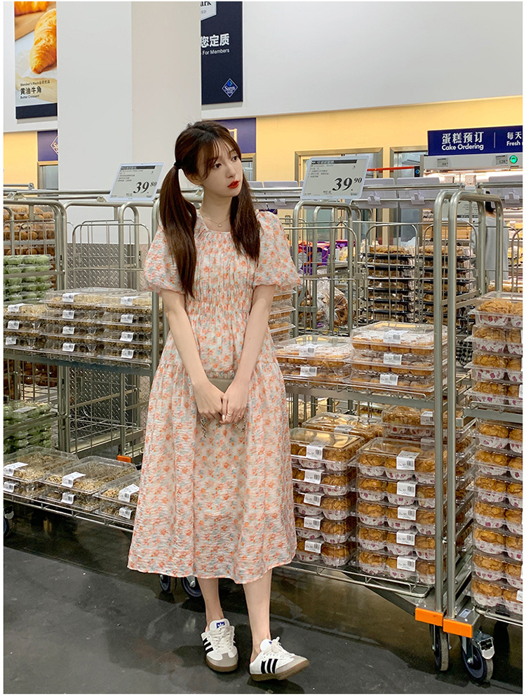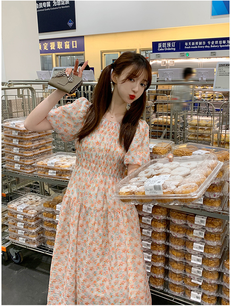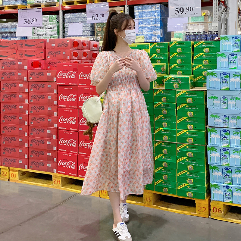 欧货碎花褶皱高腰连衣裙夏季新款设计感法式复古桔梗茶歇长裙