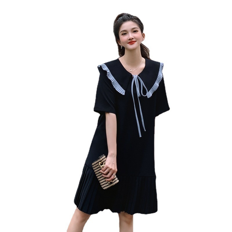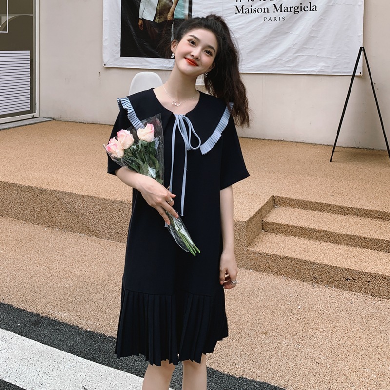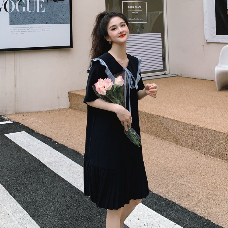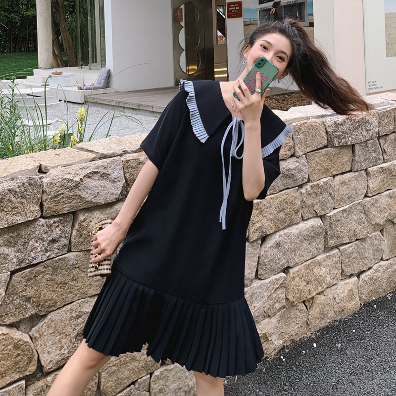 实拍夏季新款法式赫本风连衣裙女小清新温柔风感显瘦百褶裙连衣裙