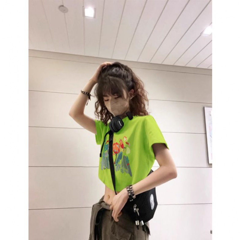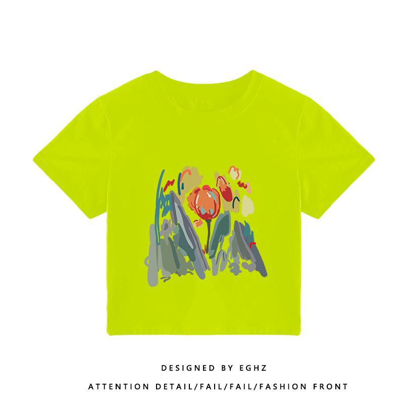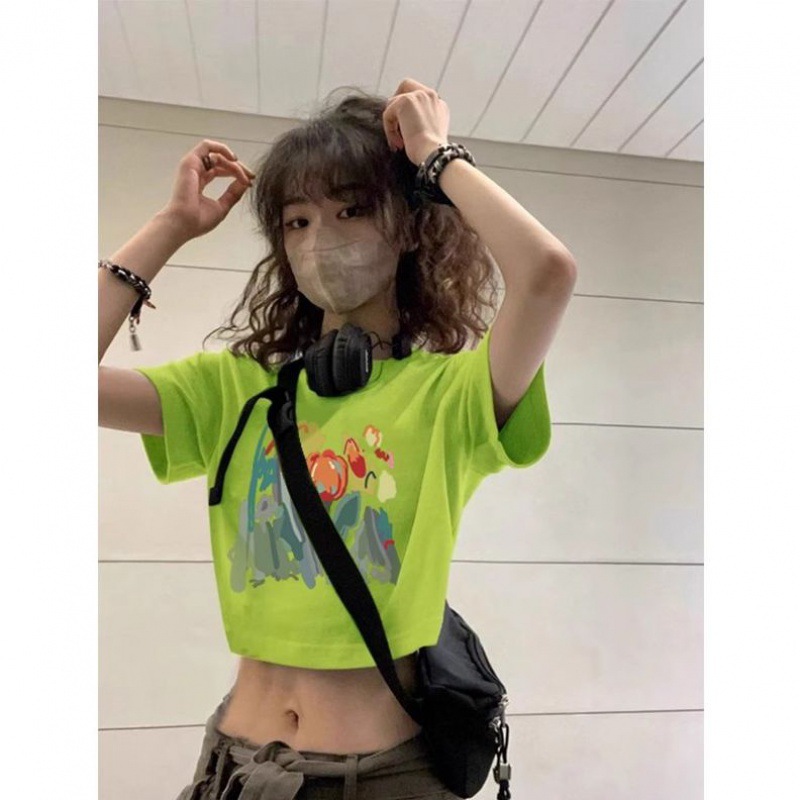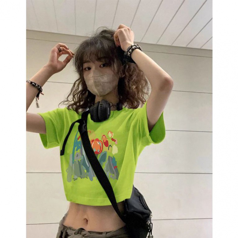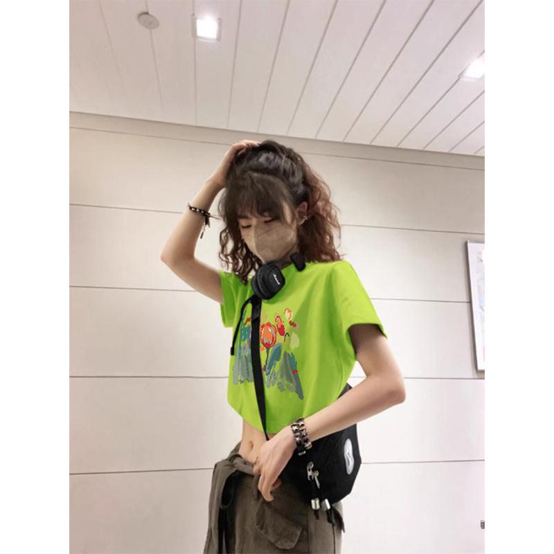 美式荧光绿甜辣短袖T恤女年夏季新款氛围感小衫百搭显瘦上衣