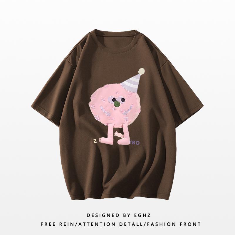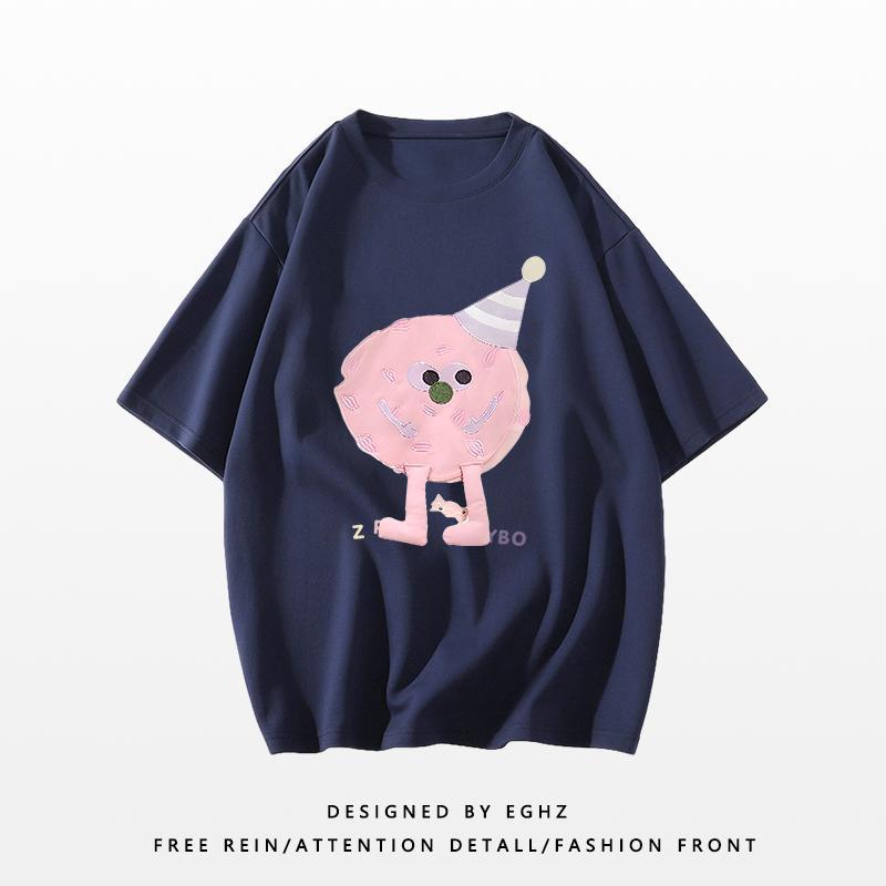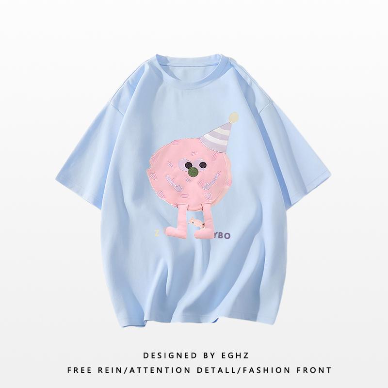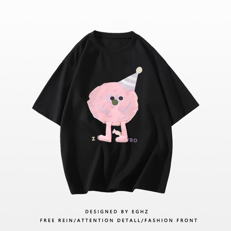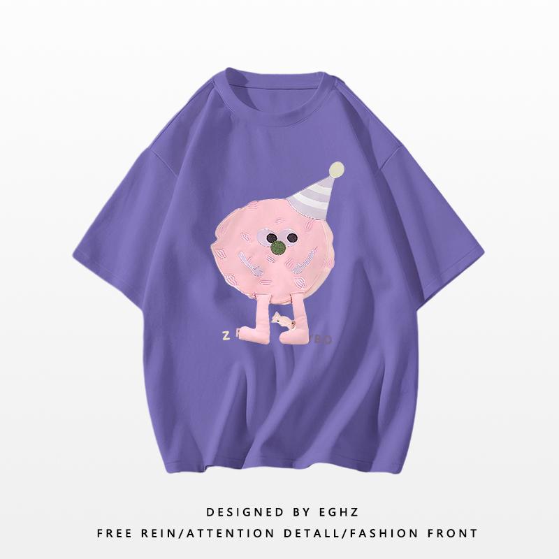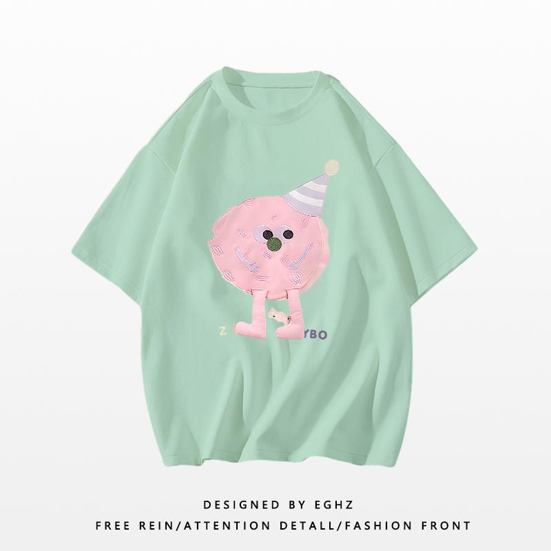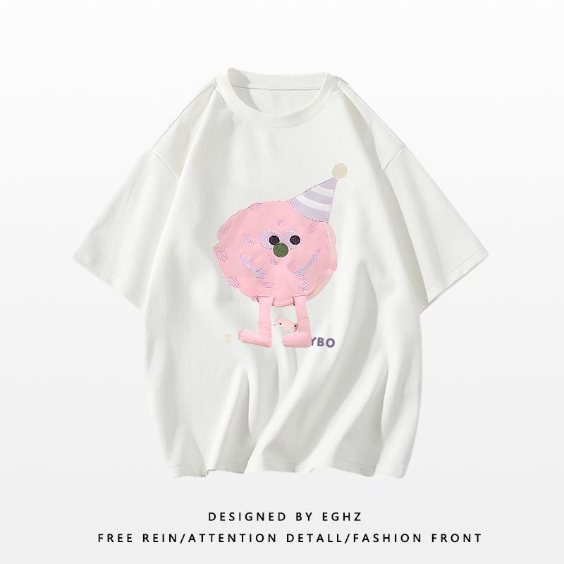 火龙果色重磅短袖t恤女夏季宽松可爱甜美多巴胺穿搭印花半袖上衣
