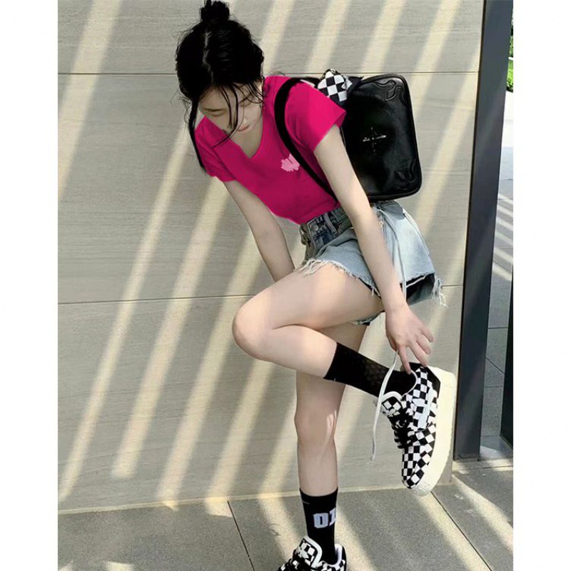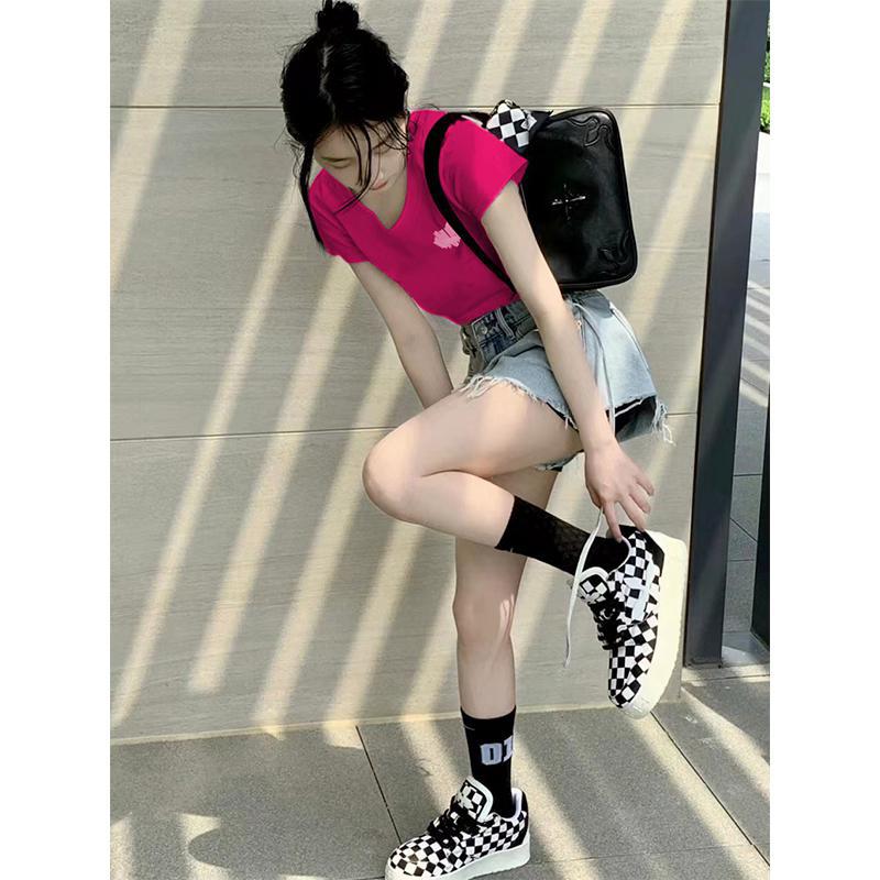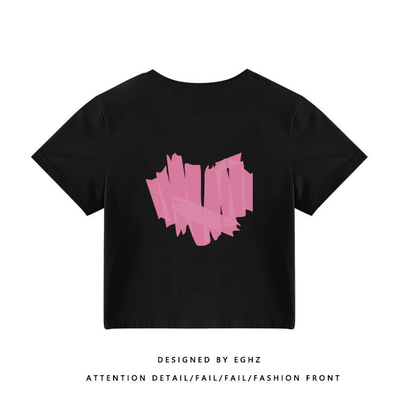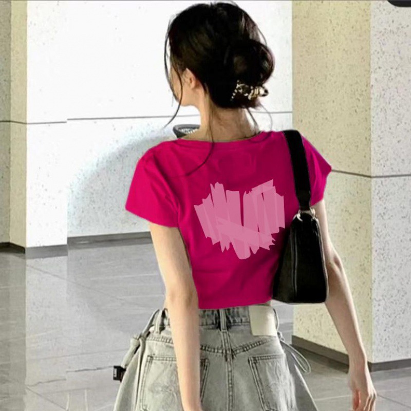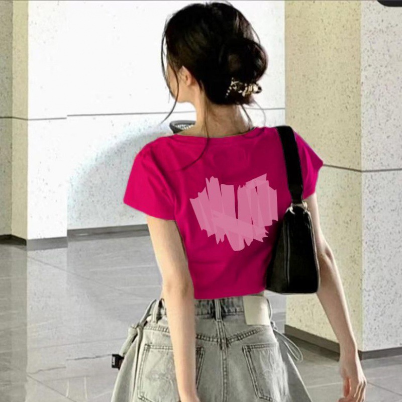 美式辣妹圆领短袖T恤女夏季新款高级感小衫原创独特短款上衣