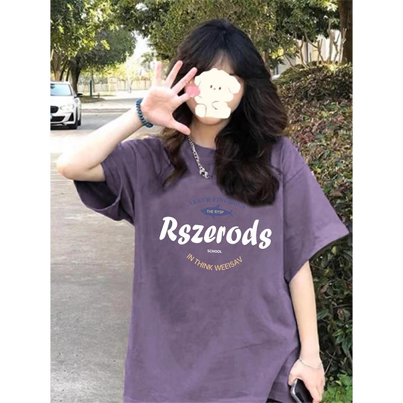 短袖t恤女新款早春穿搭重磅半袖宽松圆领甜酷风氛围感上衣潮