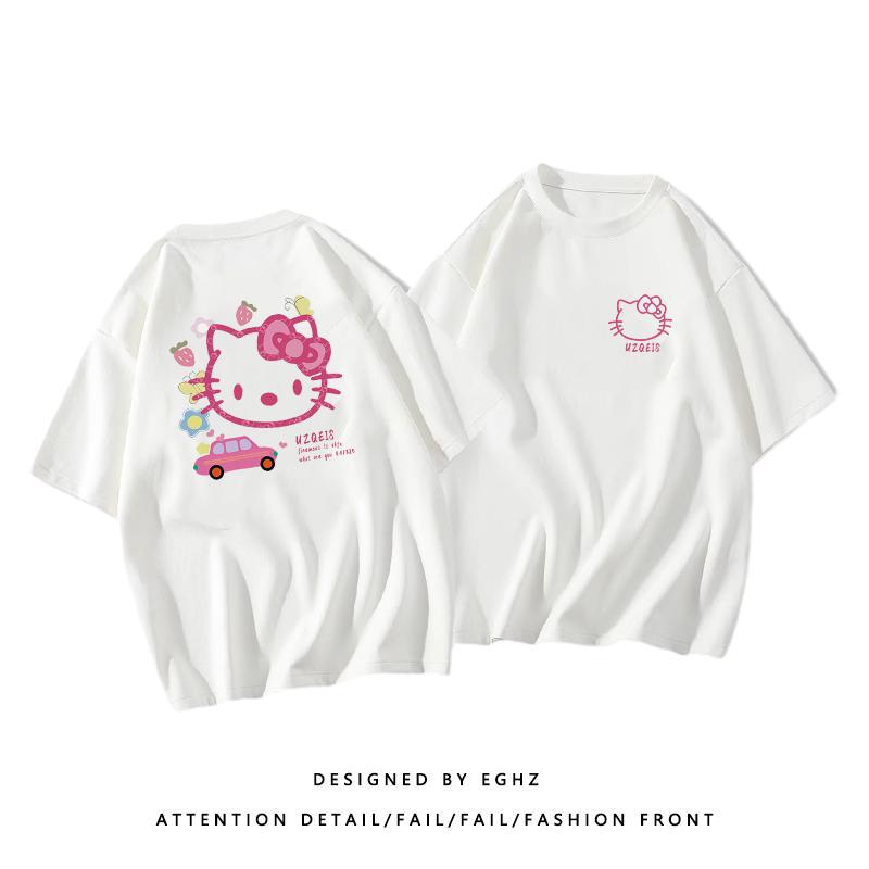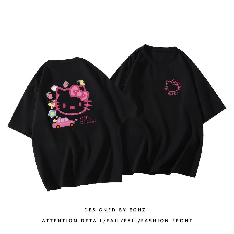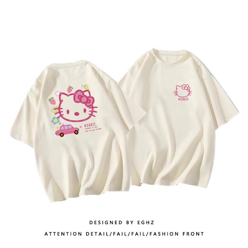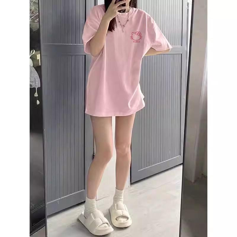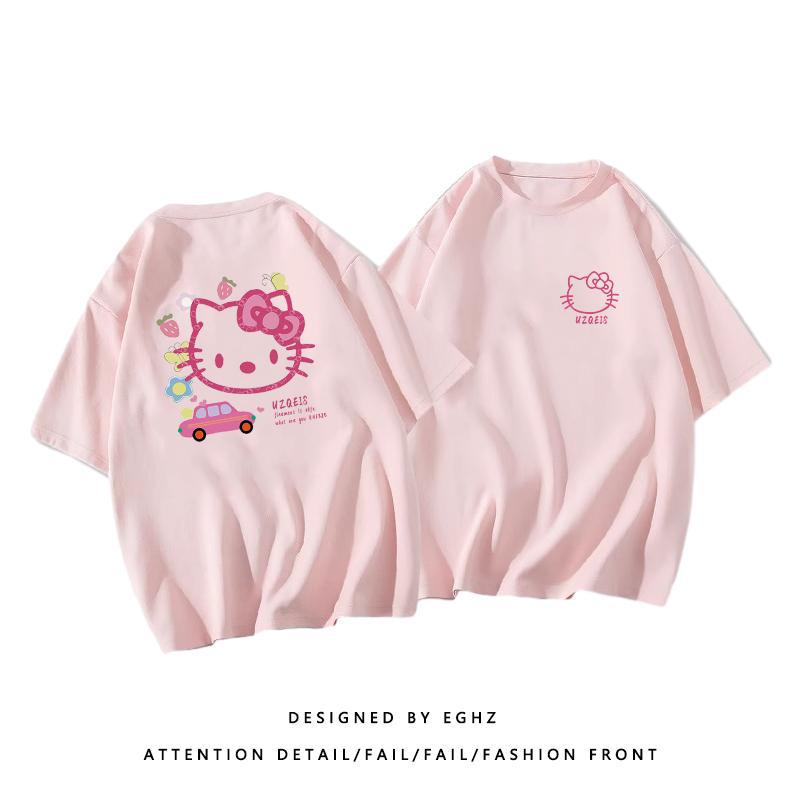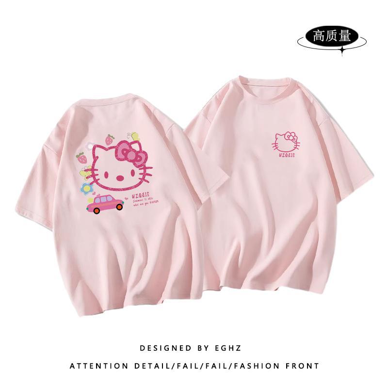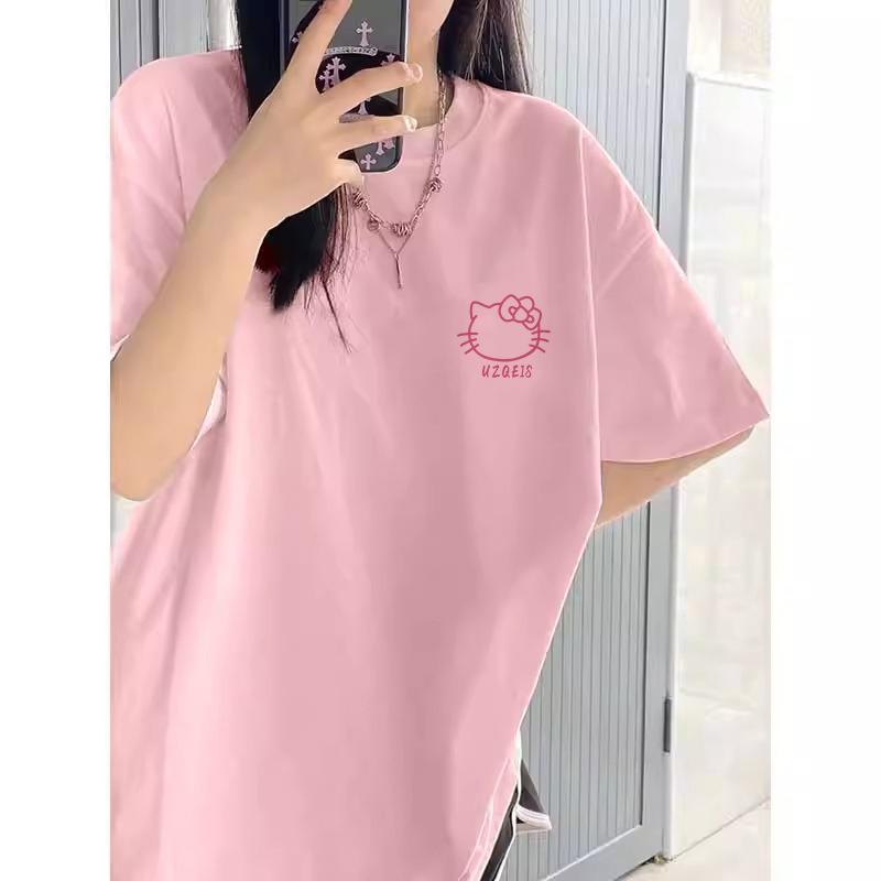 粉色纯棉短袖t恤女新款早春蝴蝶印花设计感别致绝美小衫上衣