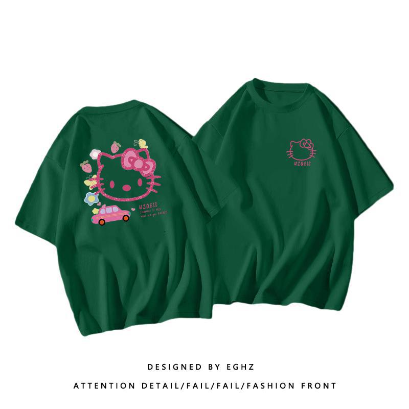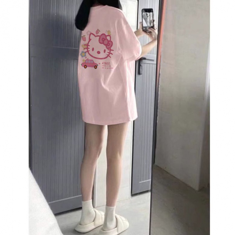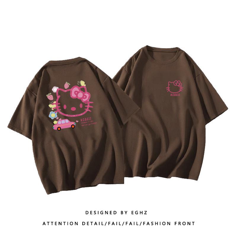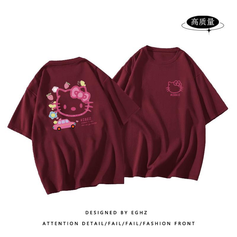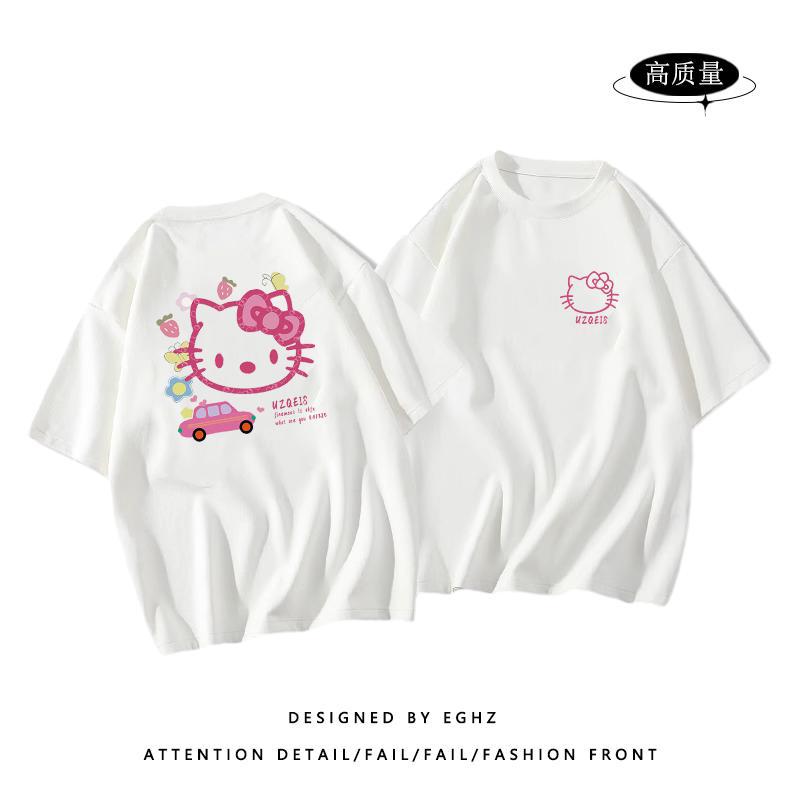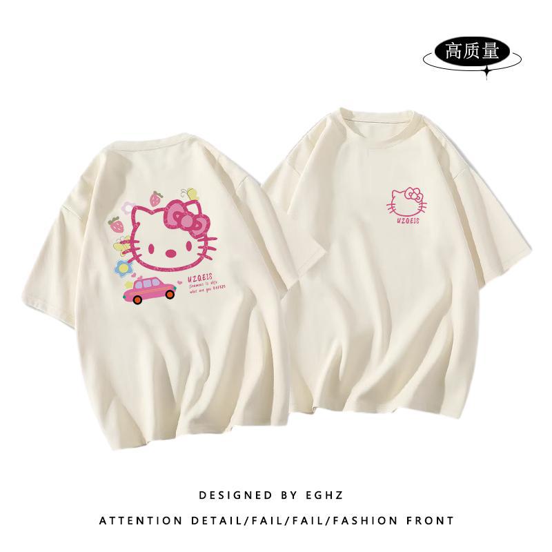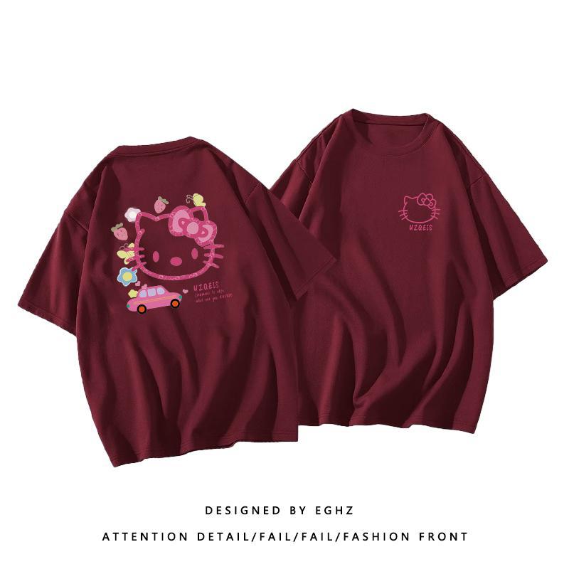 粉色纯棉短袖t恤女新款早春蝴蝶印花设计感别致绝美小衫上衣