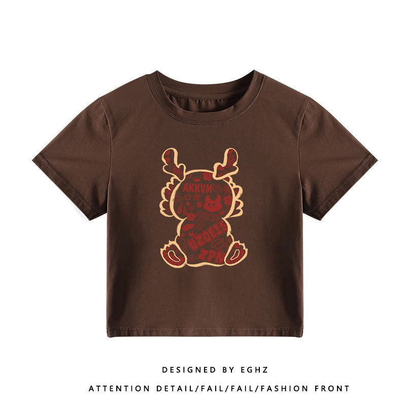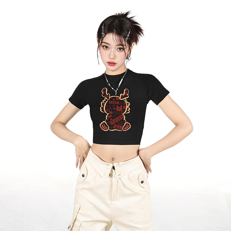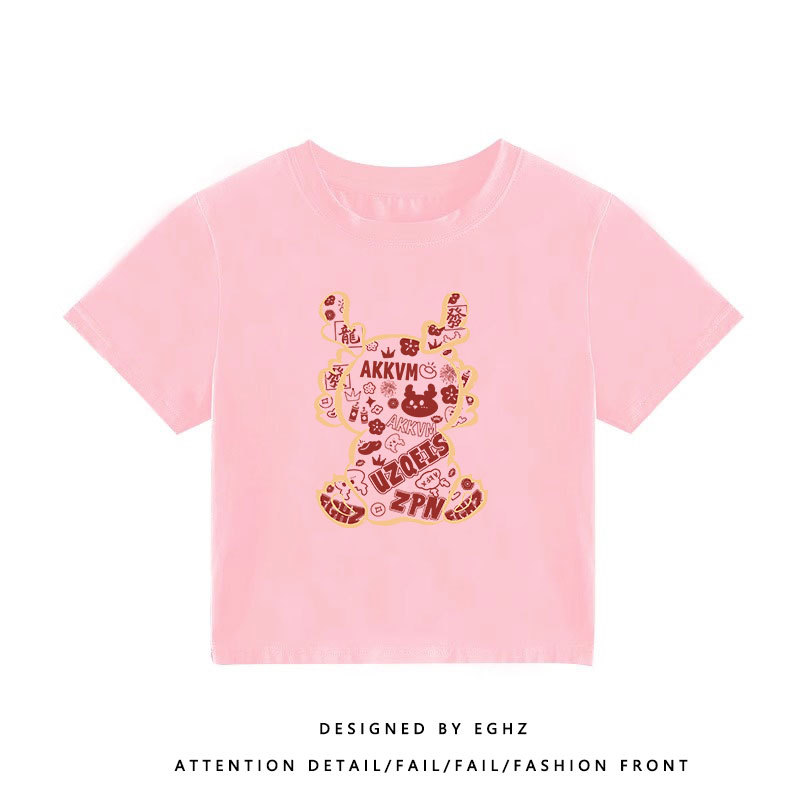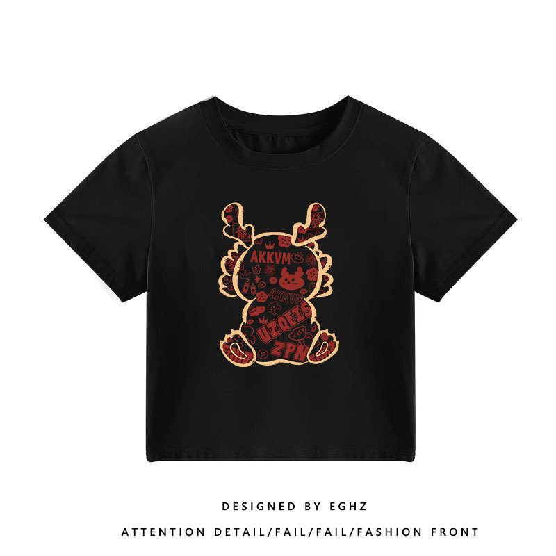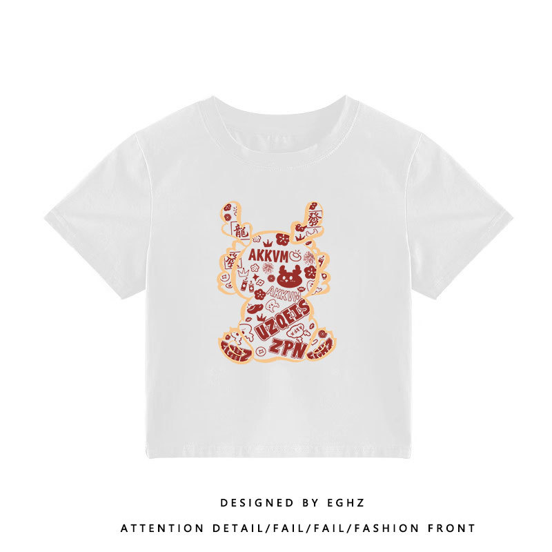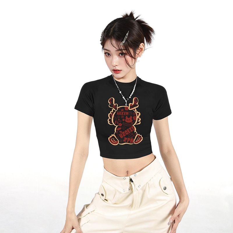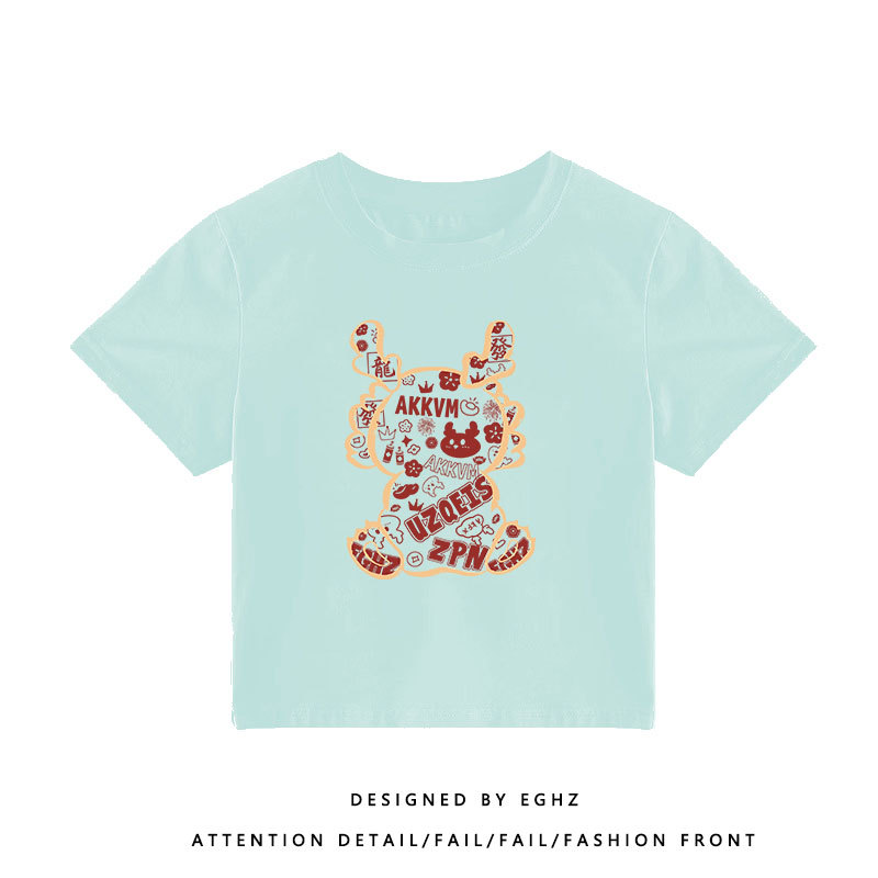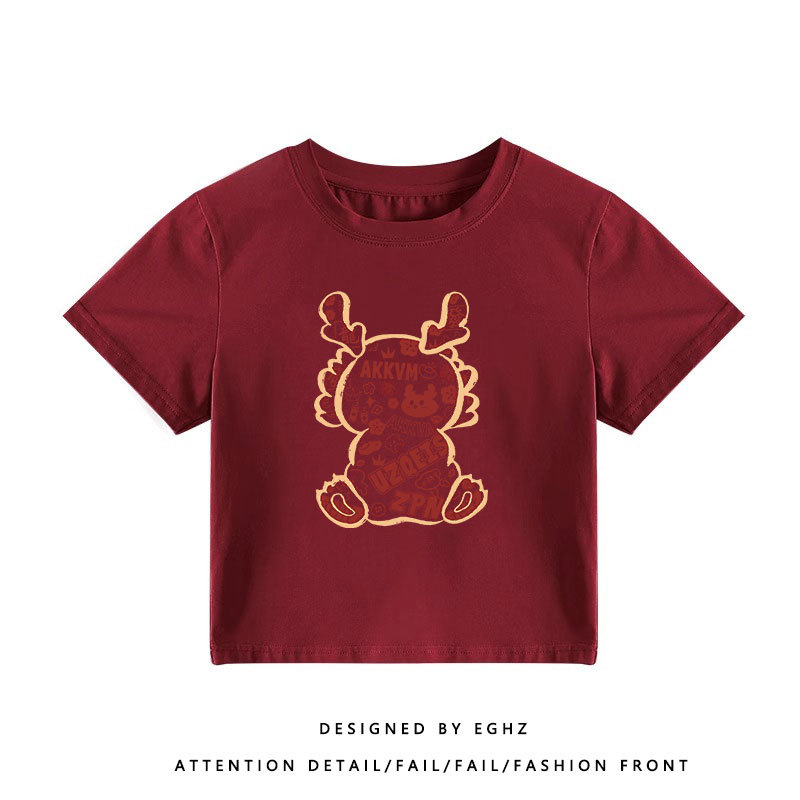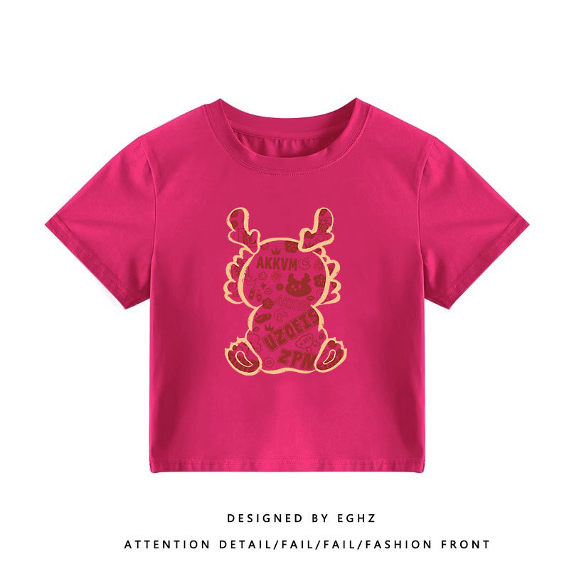 龙年短袖t恤女短款又甜又辣小众绝美潮【32支纯棉螺纹面料】