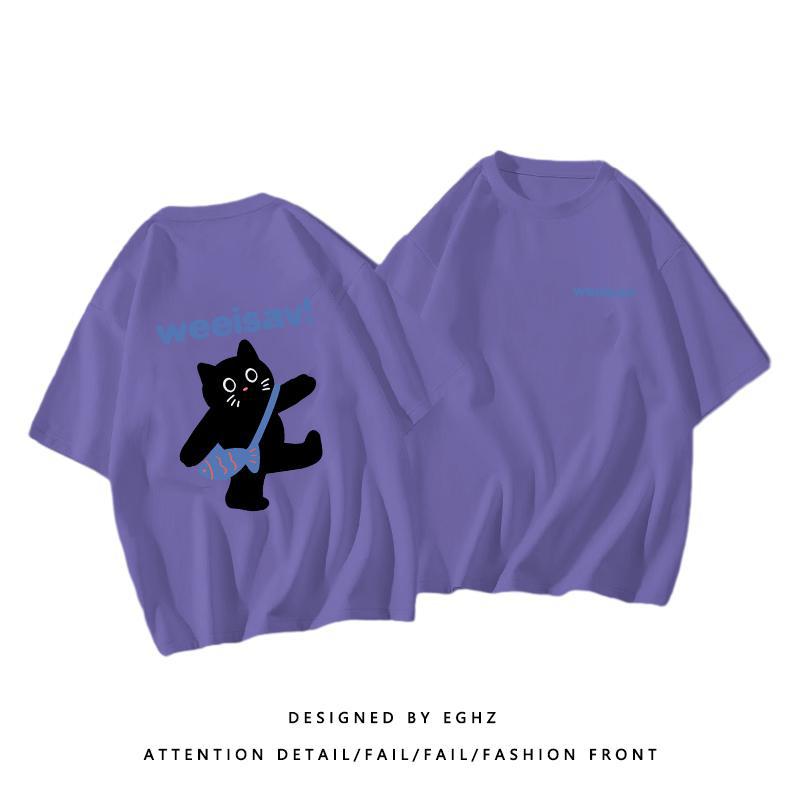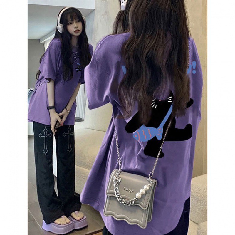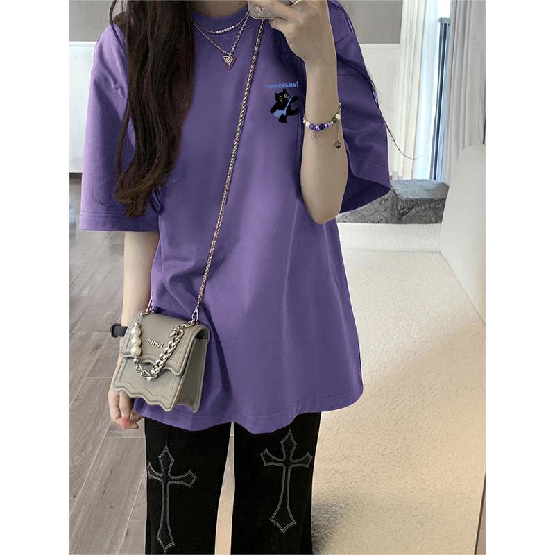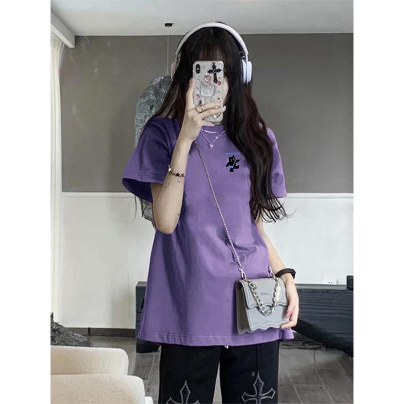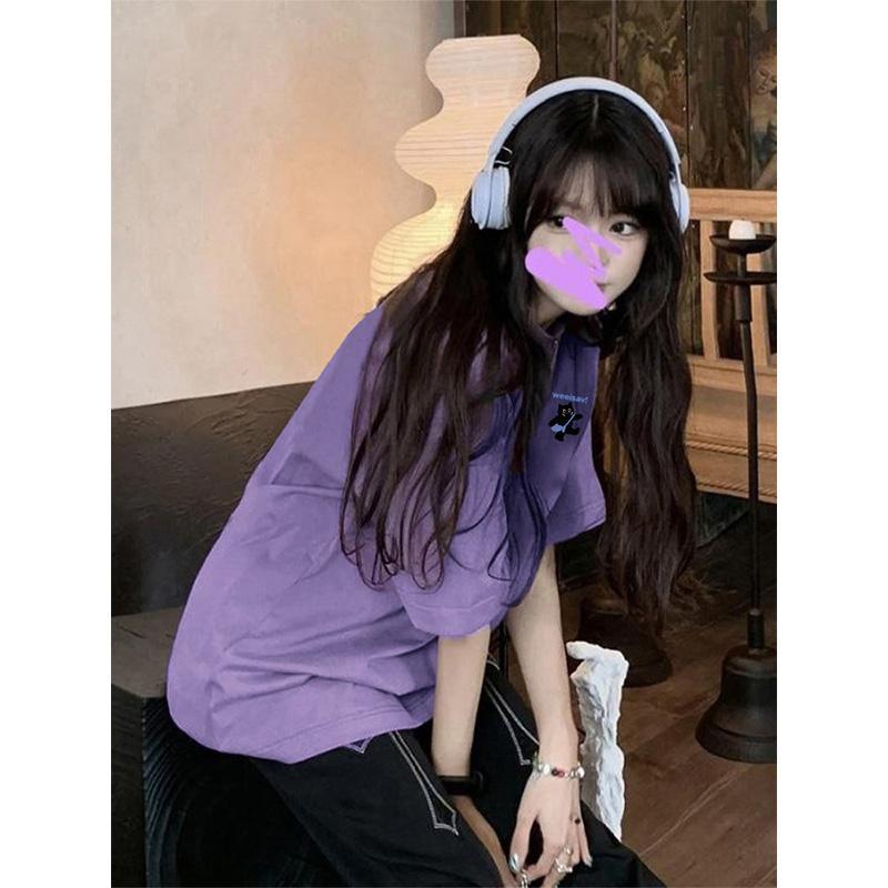 紫色甜酷风短袖T恤女夏季新款oversize宽松冷淡系高级感上衣