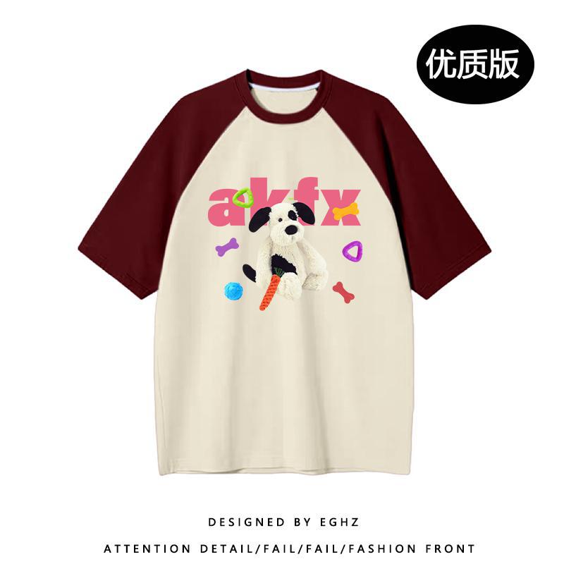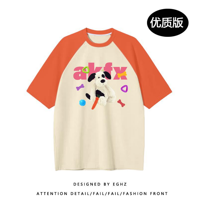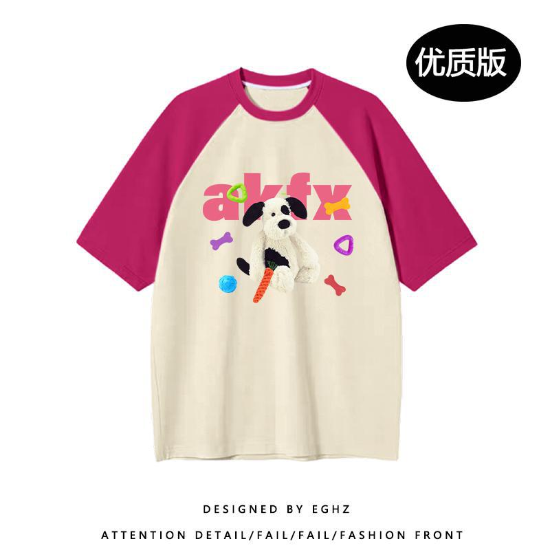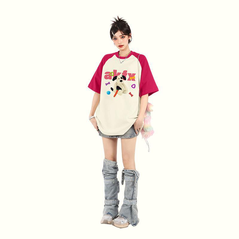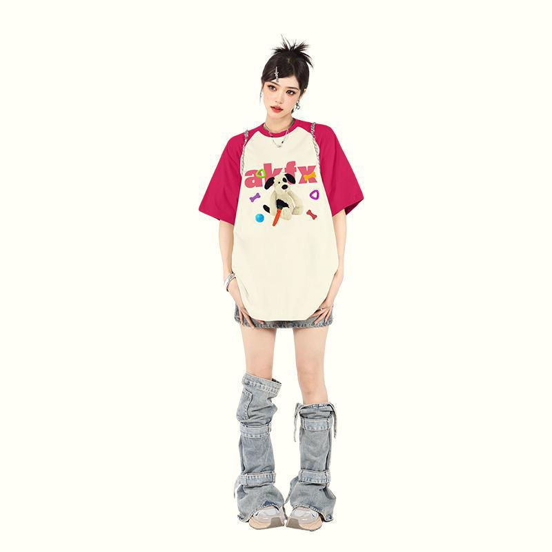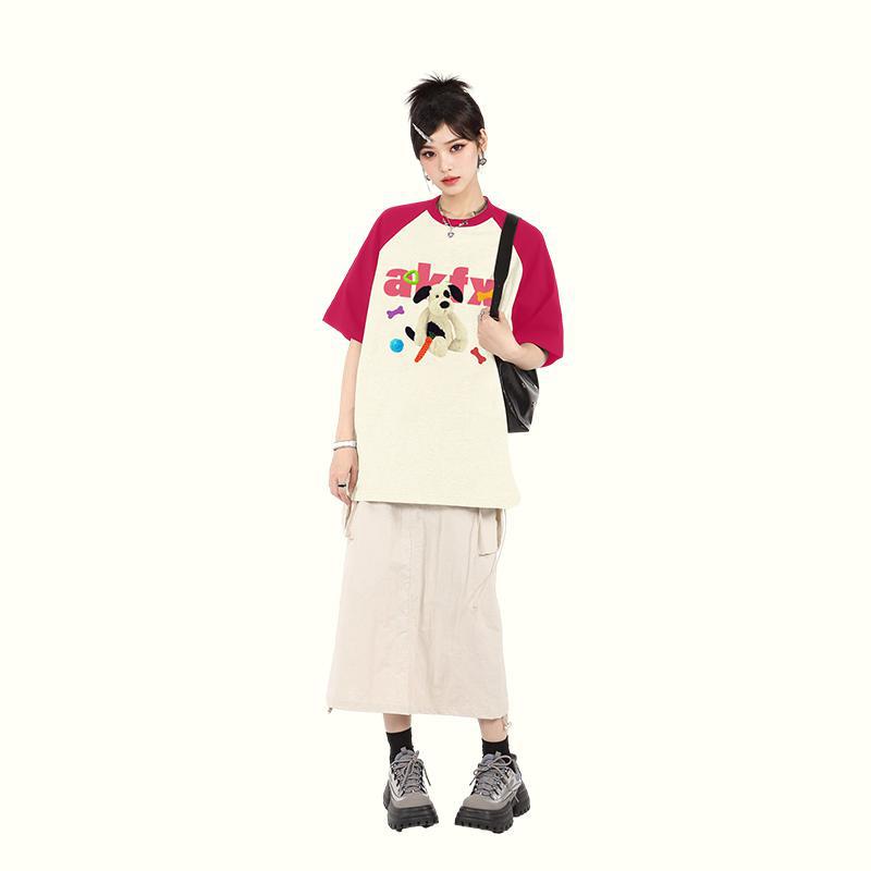 拼接撞色插肩短袖t恤女夏季设计感小众宽松oversize圆领上衣