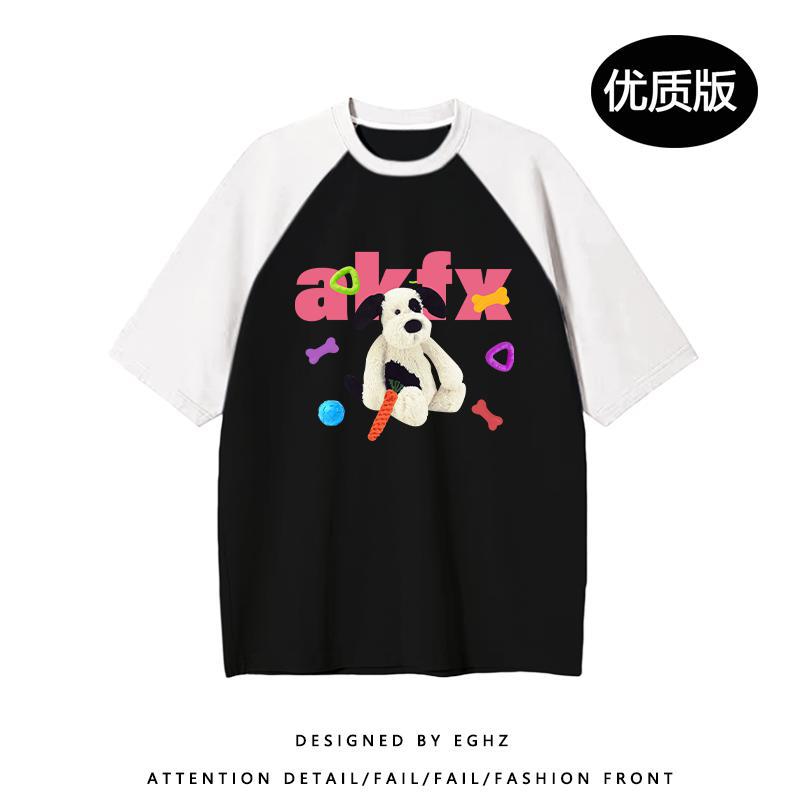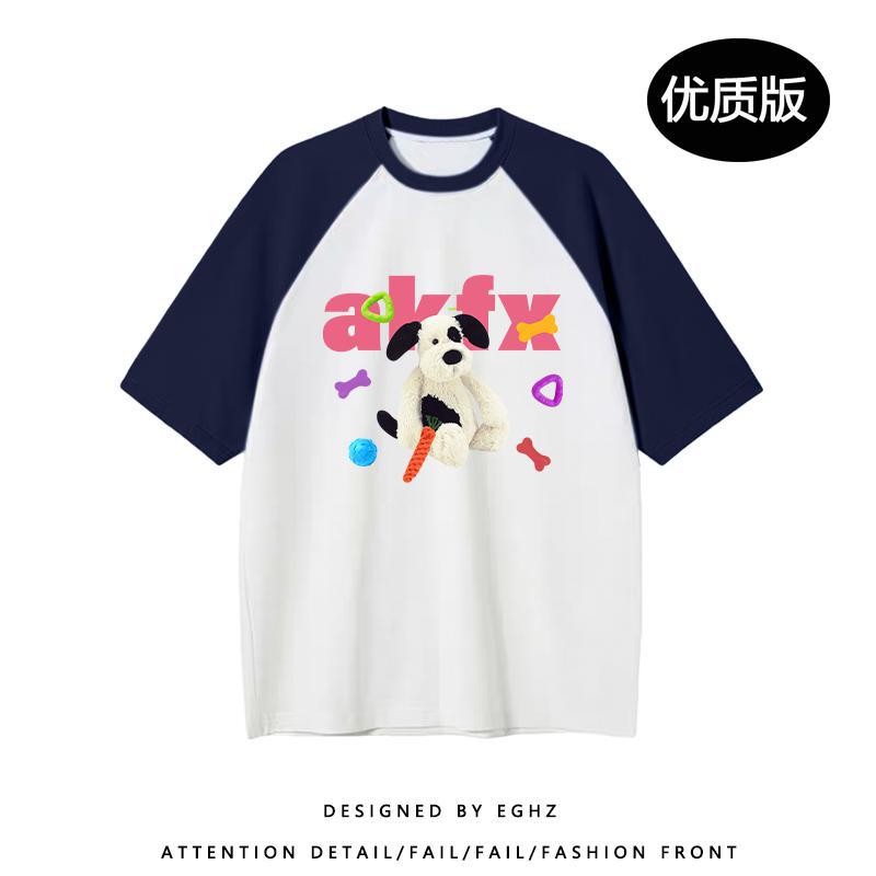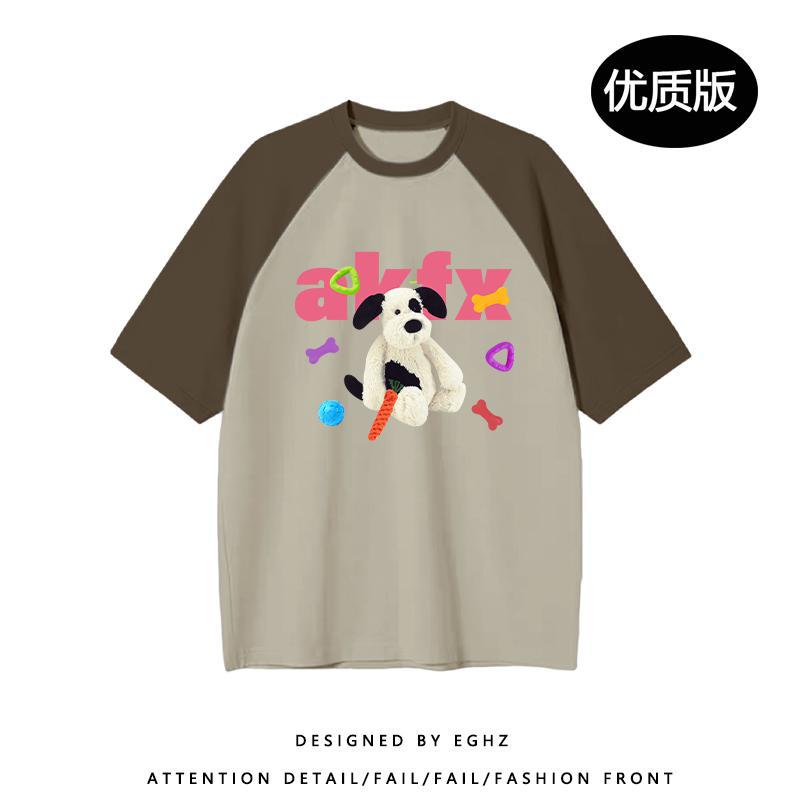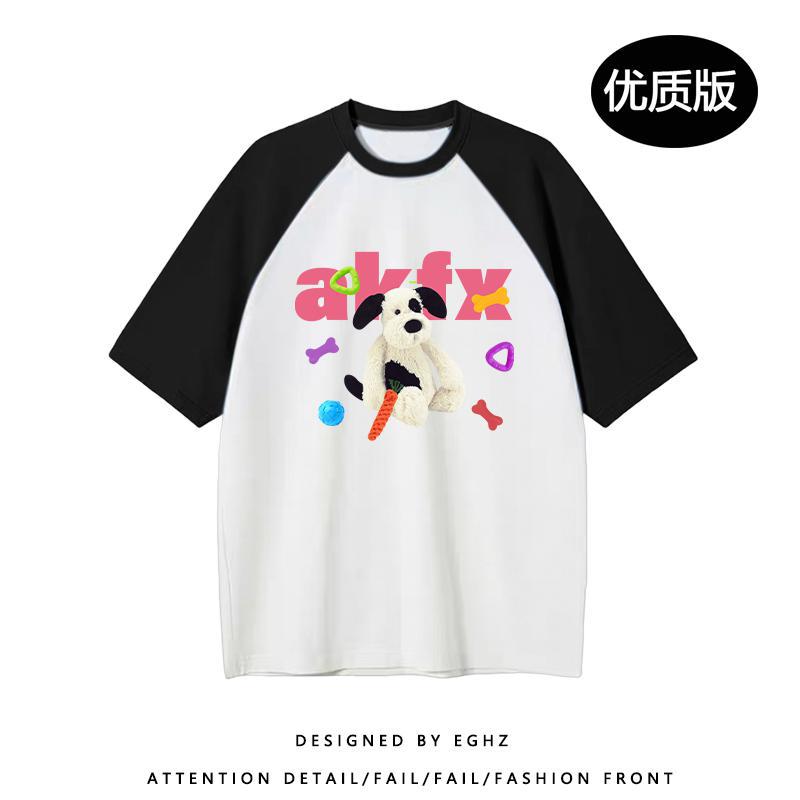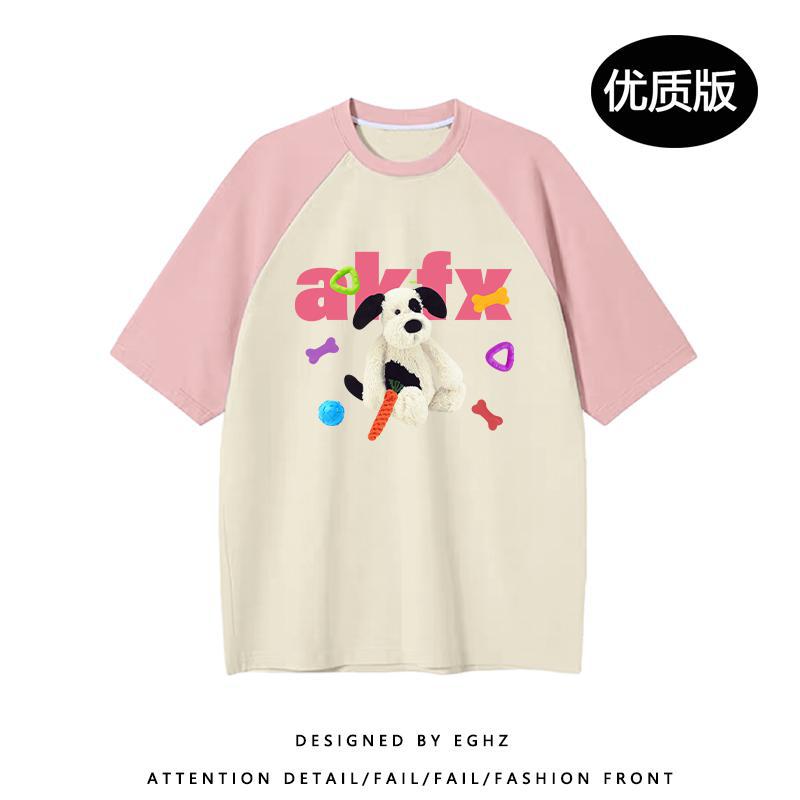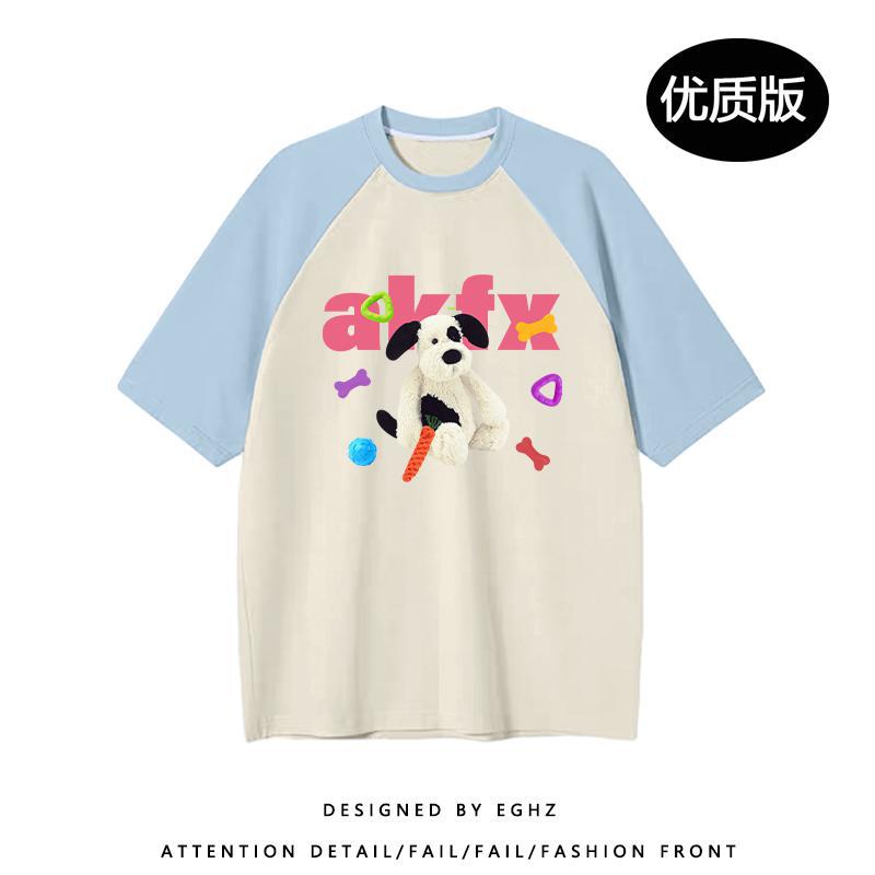 拼接撞色插肩短袖t恤女夏季设计感小众宽松oversize圆领上衣