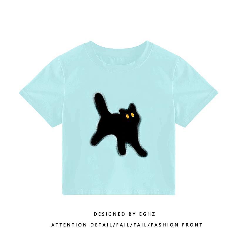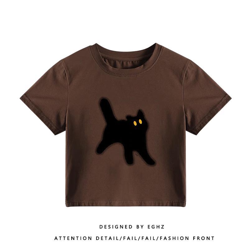 美式复古插肩袖T恤女收腰显瘦ins潮夏季宽松韩版短袖体桖短款上衣