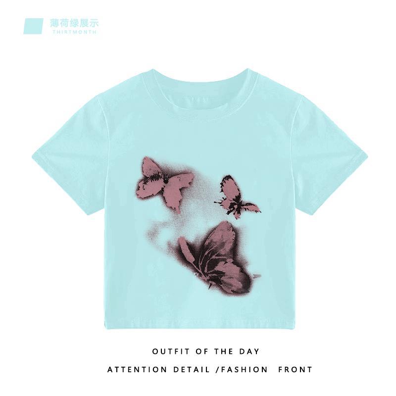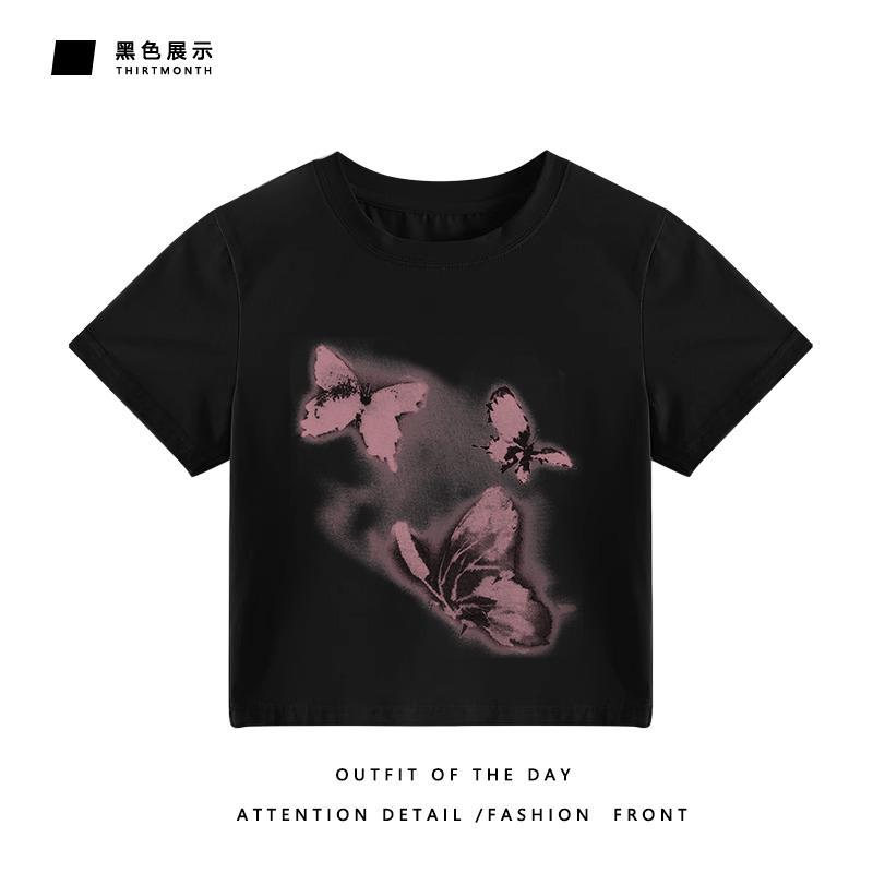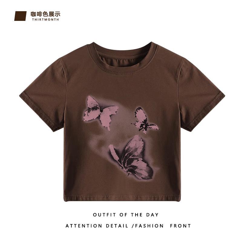 美式辣妹风正肩短袖t恤女装夏季新款设计感独特别致内搭减龄上衣