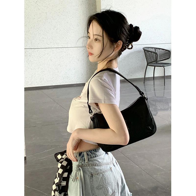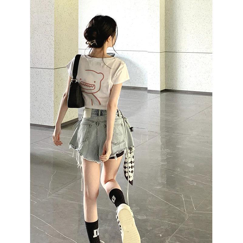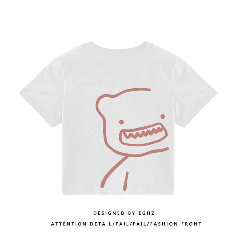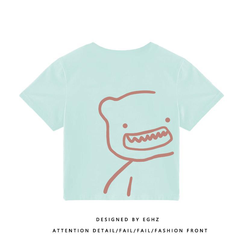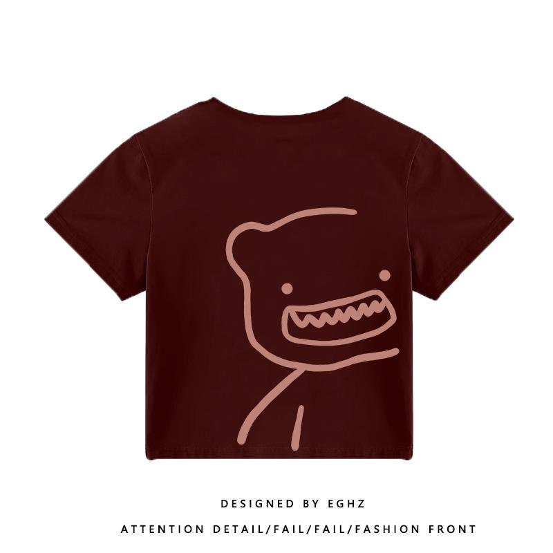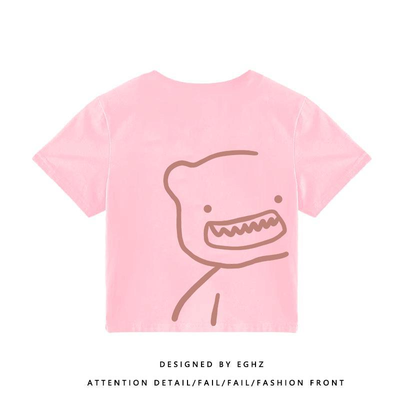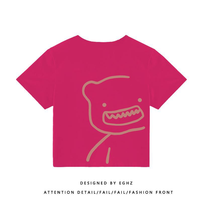 火龙果色圆领短款短袖新款女装小众设计感多巴胺穿搭正肩上衣