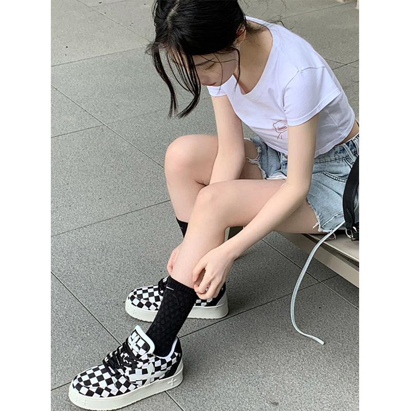 真皮厚底小白鞋女夏季新款圆头增高松糕超轻底网面透气休闲鞋