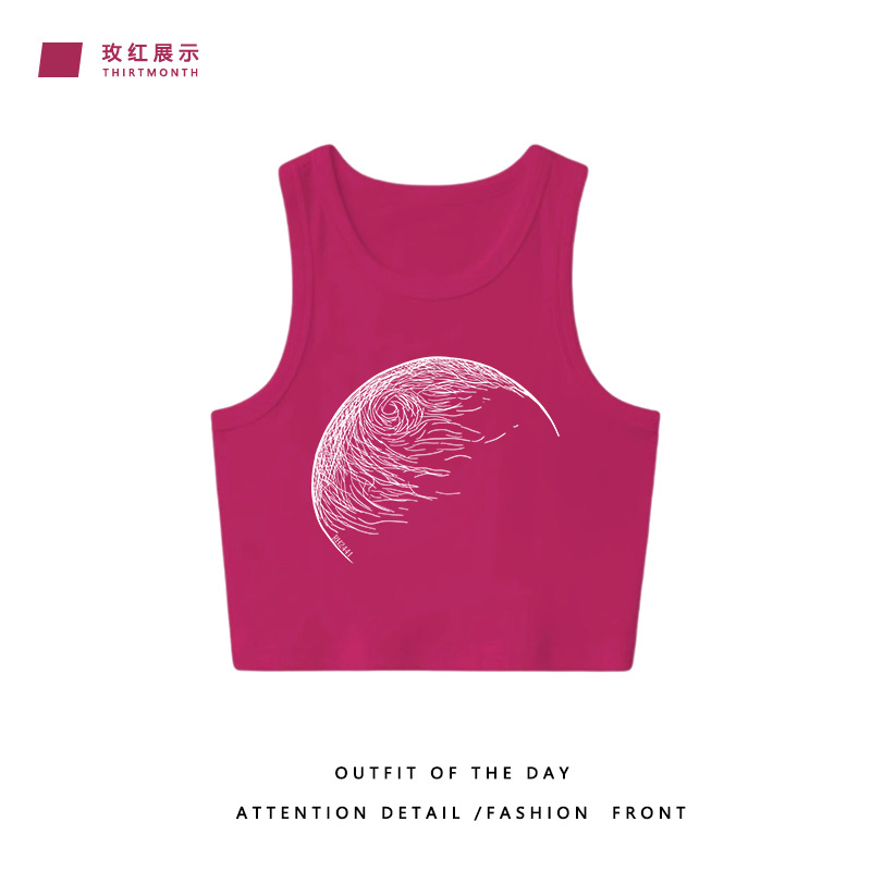 莫奈花园风美式复古无袖背心女夏季设计短款小吊带高级感