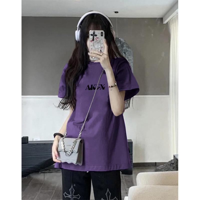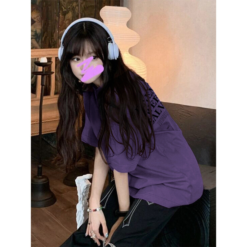 圆领短袖t恤女夏季新款oversize宽松小众别致慵懒风上衣