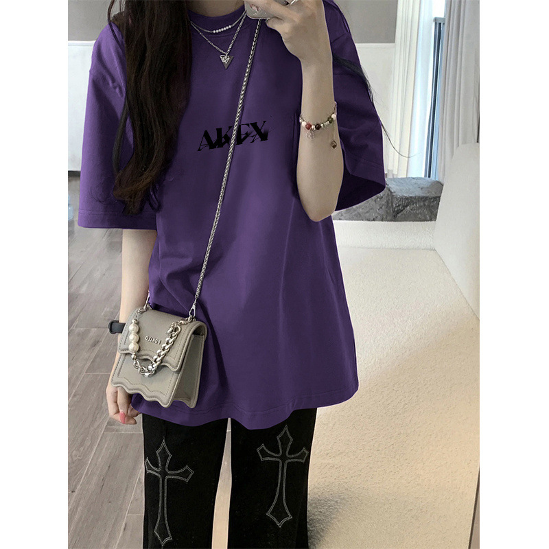 重磅纯棉夏季印花短袖T恤女休闲百搭卡通美式高街显瘦潮流上衣服
