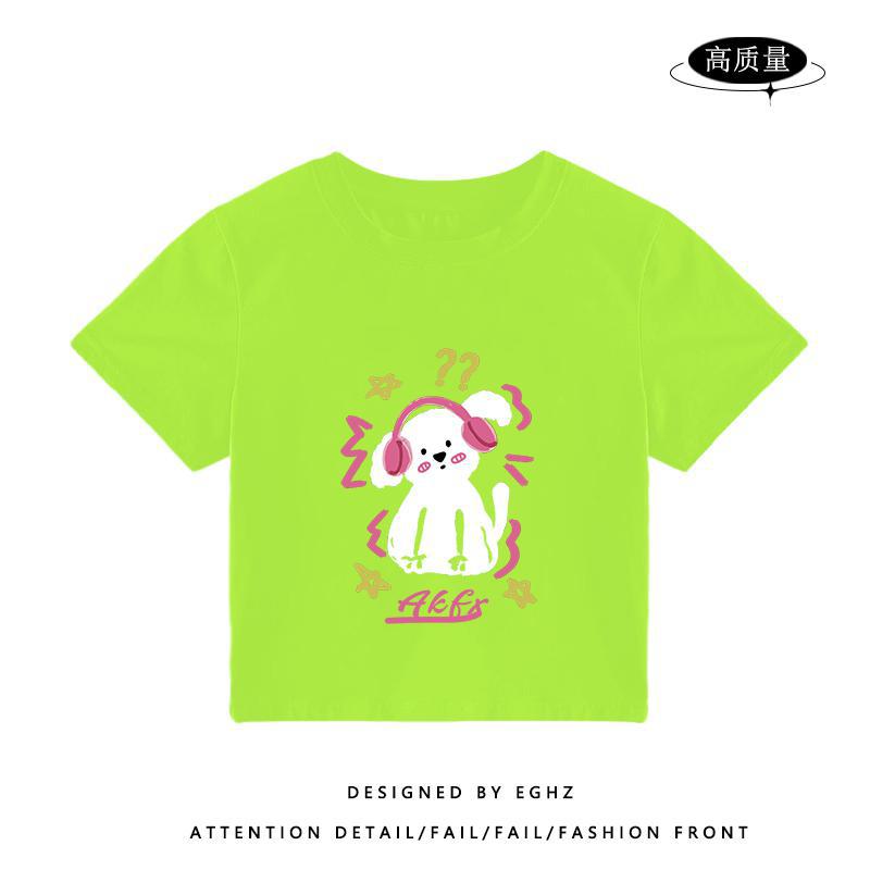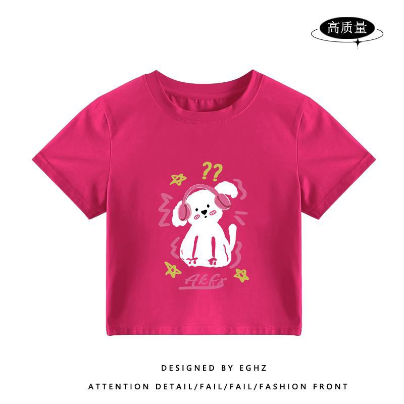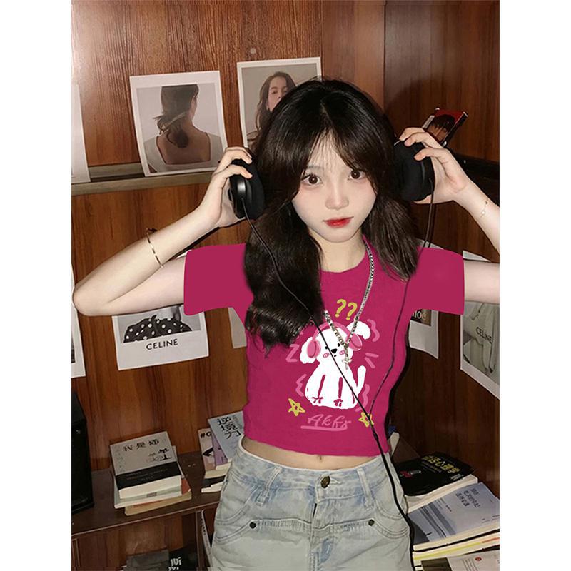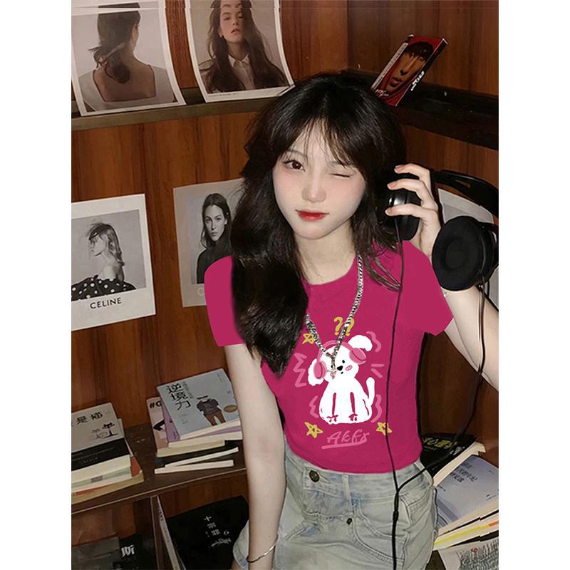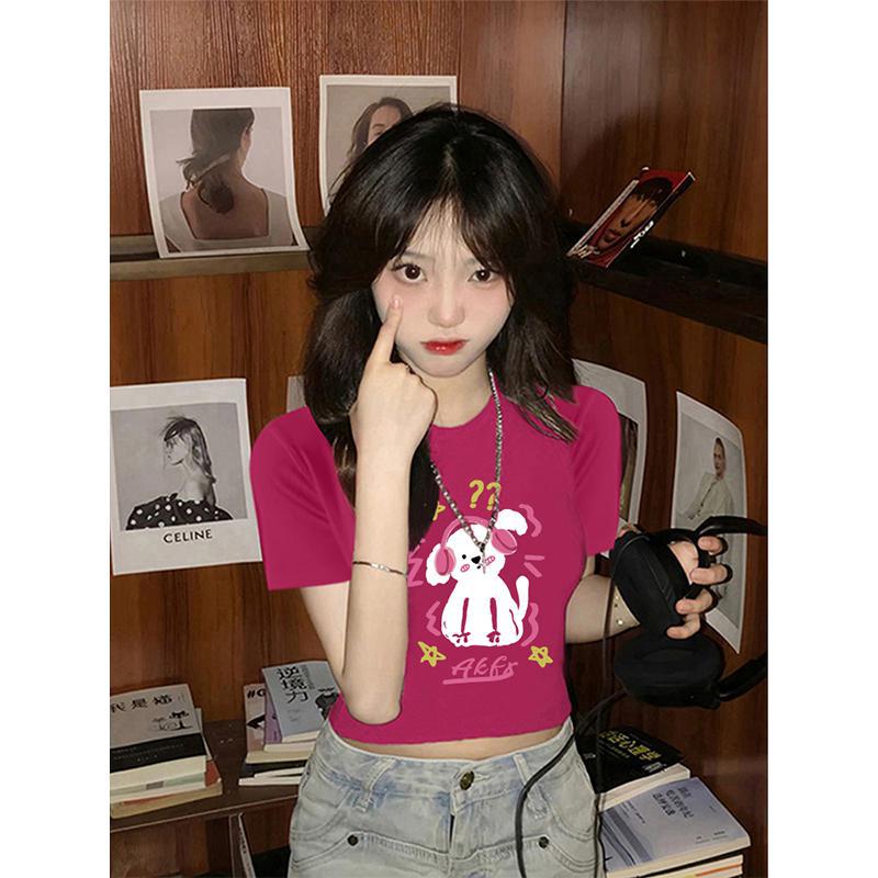 独特别致t恤短袖女小个子短款火龙果色多巴胺穿搭修身设计感上衣