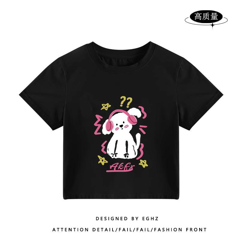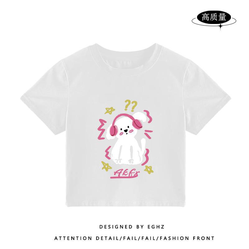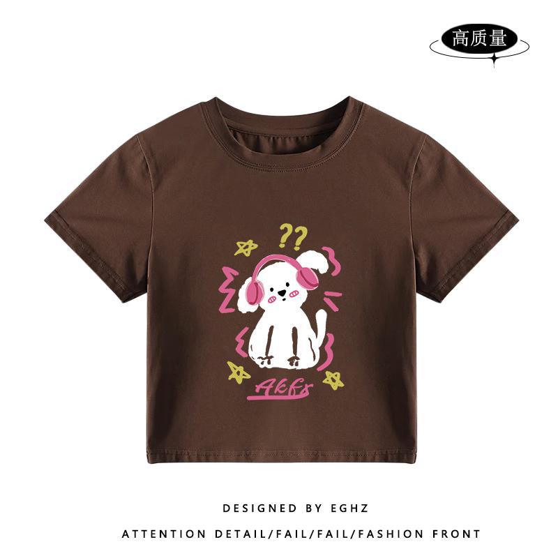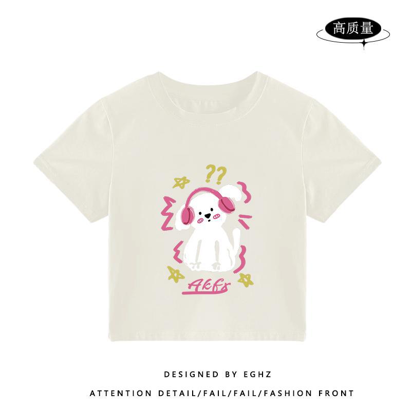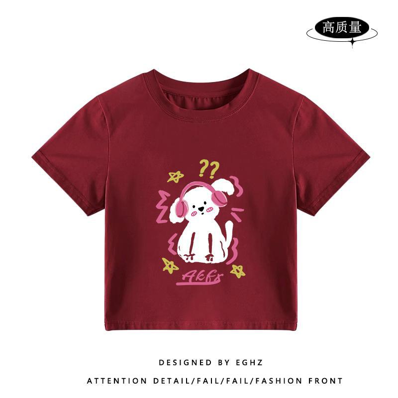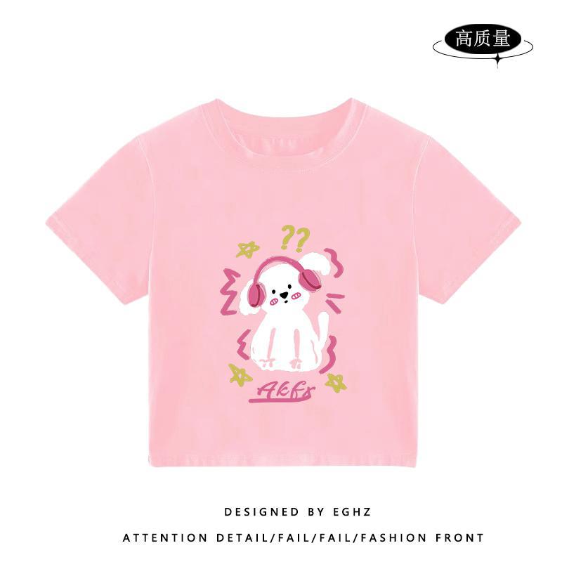 独特别致t恤短袖女小个子短款火龙果色多巴胺穿搭修身设计感上衣