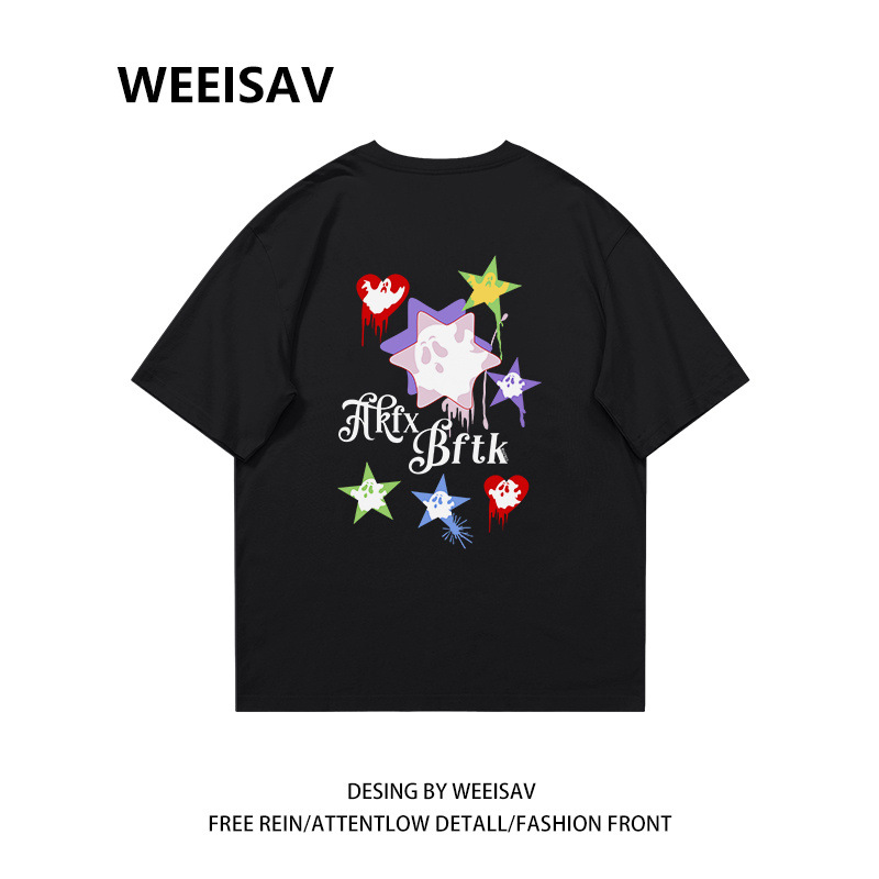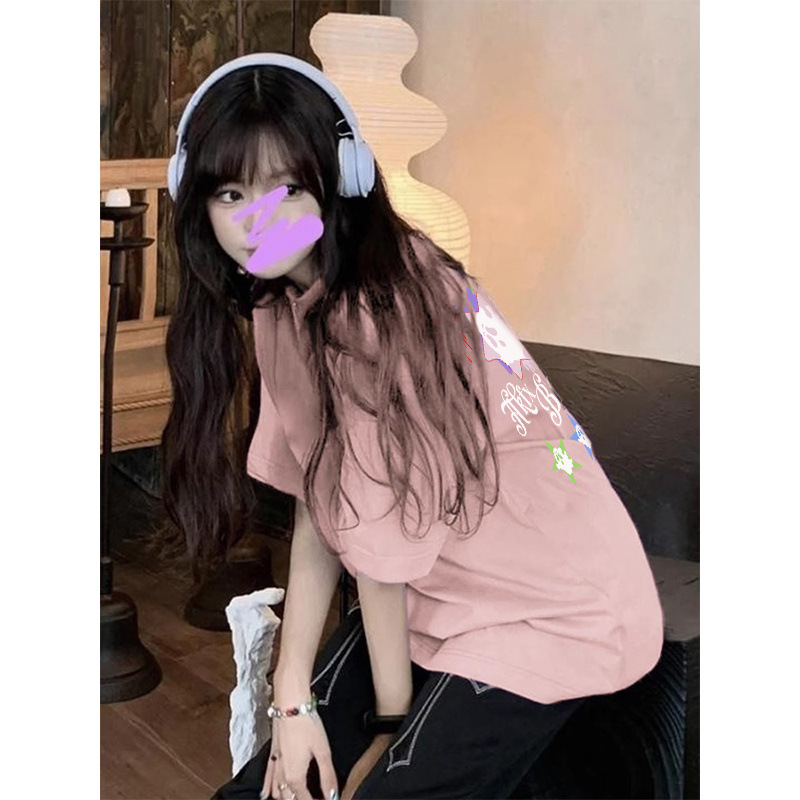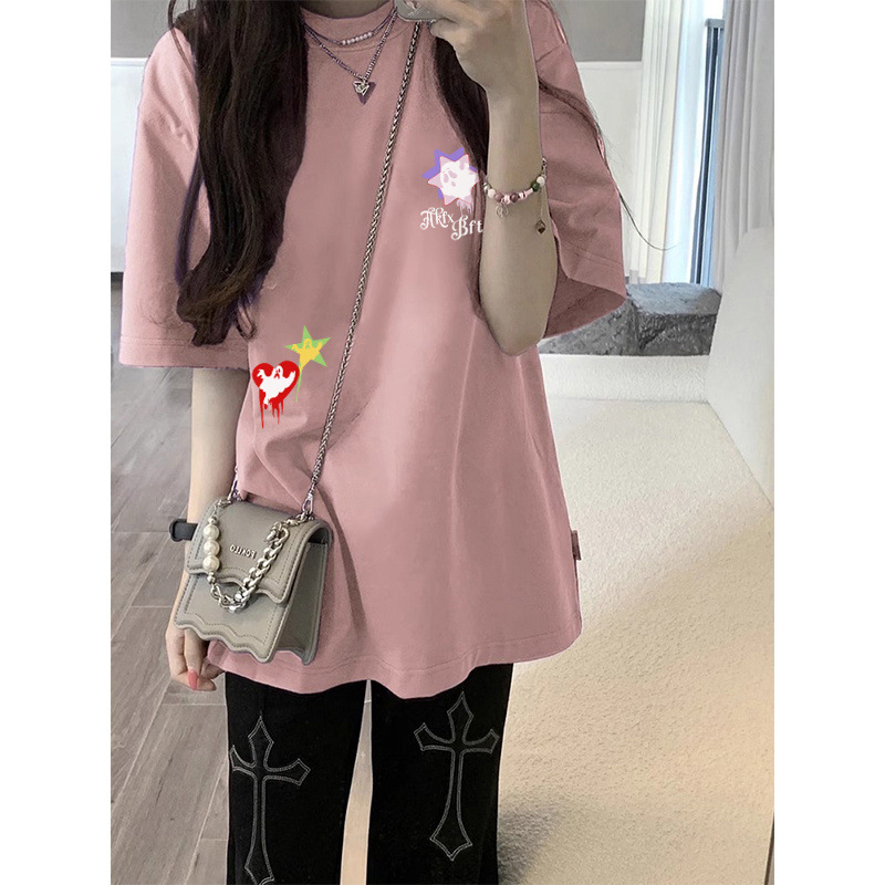 美式复古圆领短袖t恤女夏季新款oversize独特设计感上衣