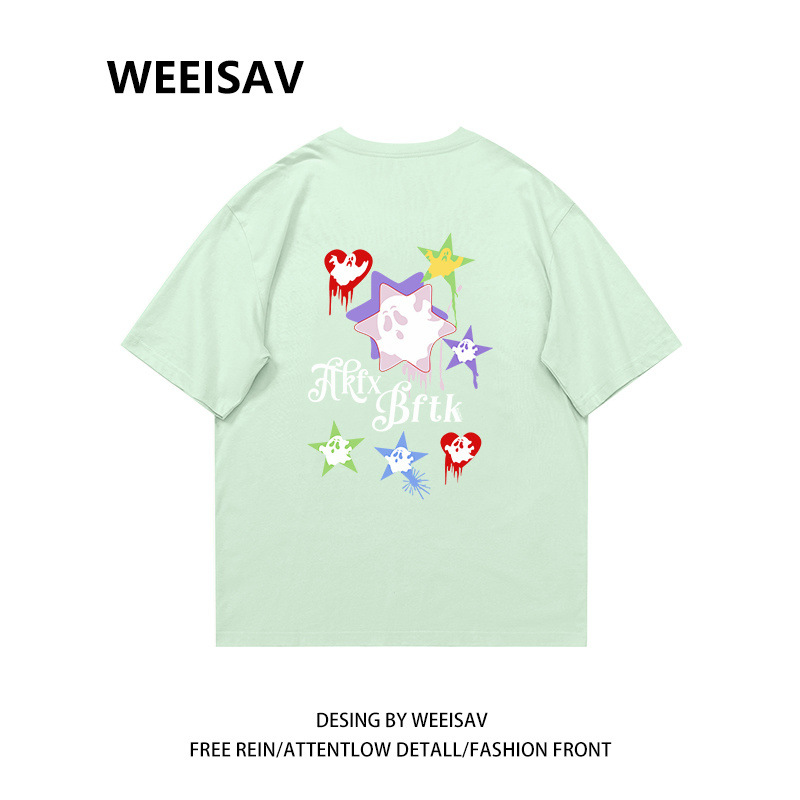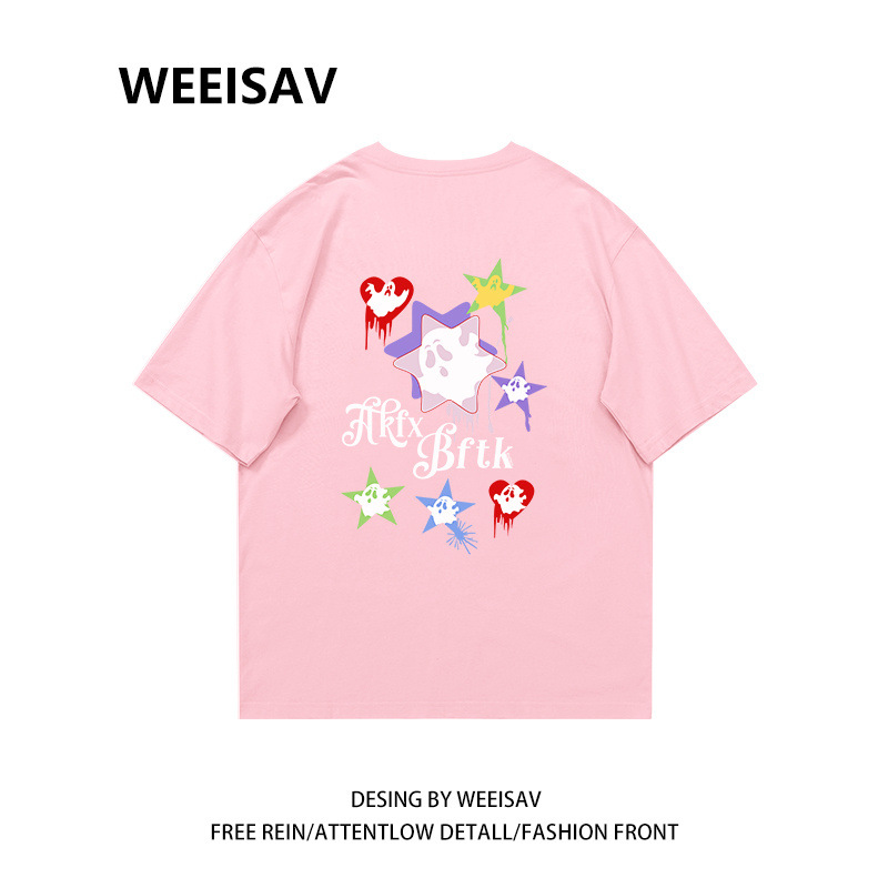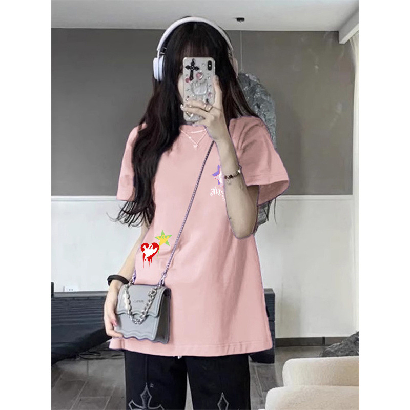 美式复古纯棉短袖t恤女小众别致爱心字母发泡印花宽松半袖上衣夏