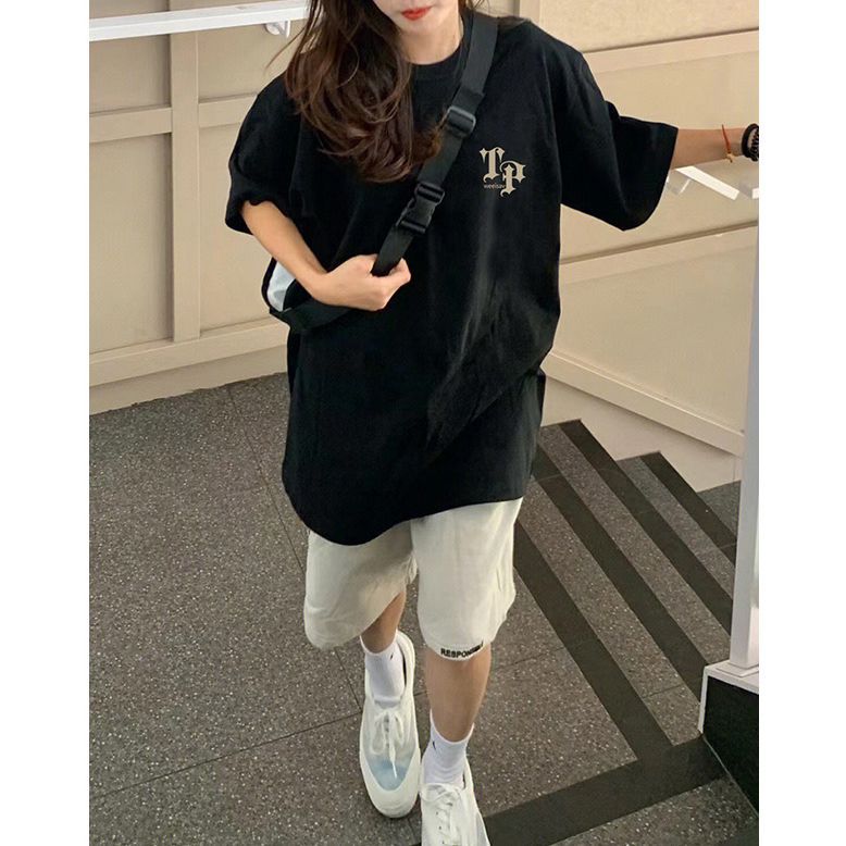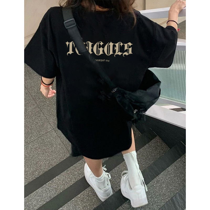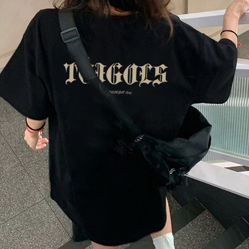 黑色正肩纯棉宽松短袖T恤女夏季oversize百搭复古港味chic上衣潮