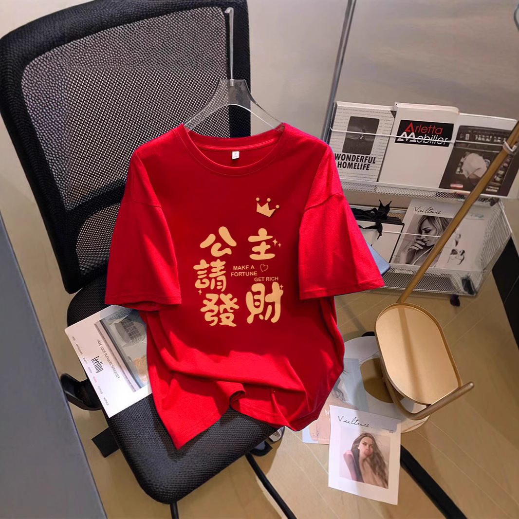 2025蛇纯棉短袖t恤新年短袖红色 过年元旦年会活动男女本命年衣服