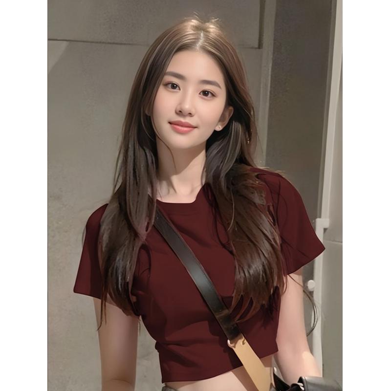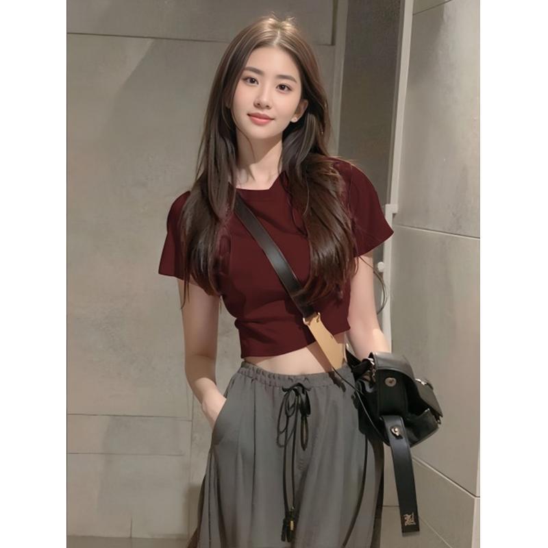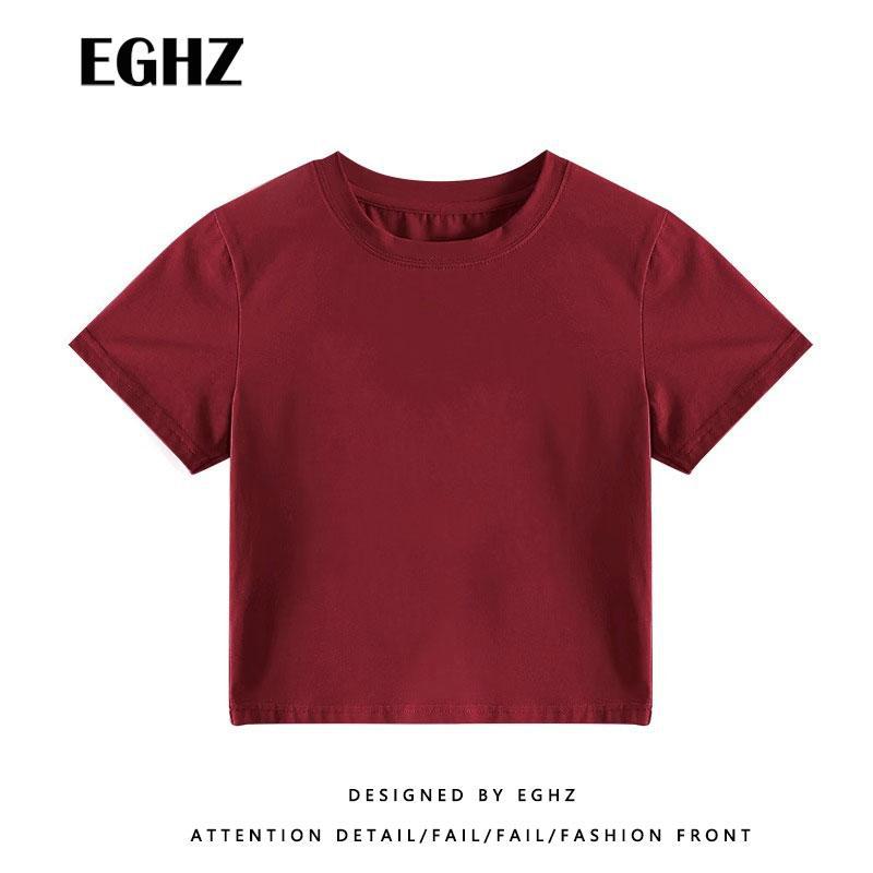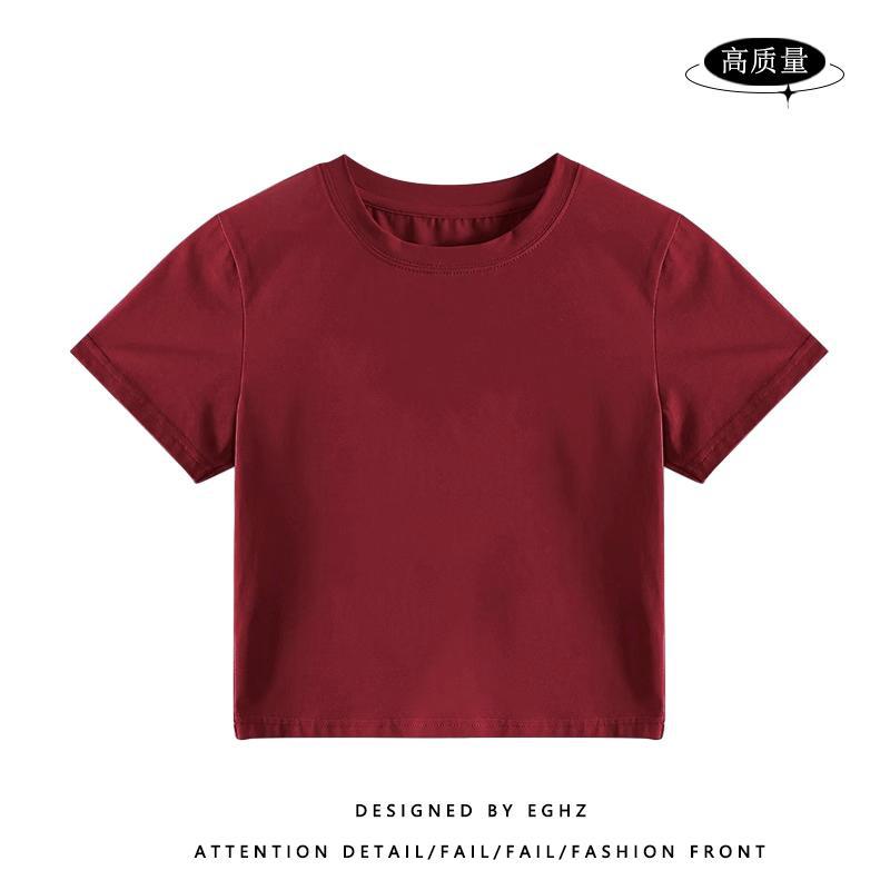 美式酒红色设计感独特别致短袖t恤女bm辣妹小个子紧身显高短上衣