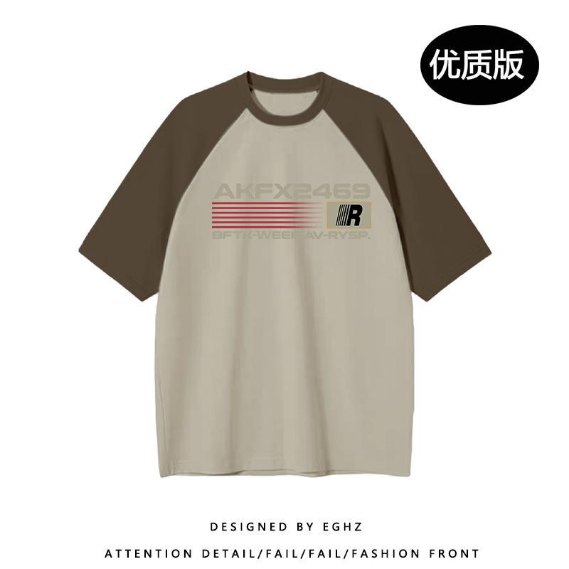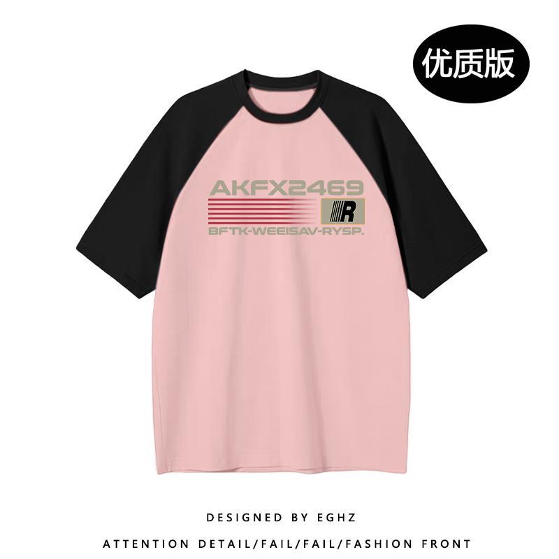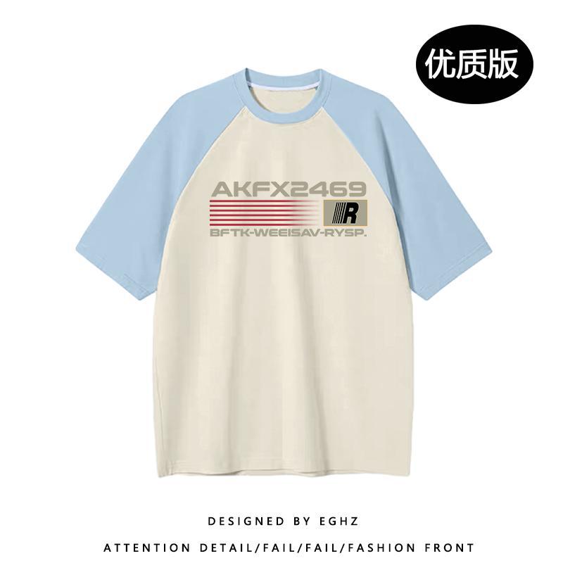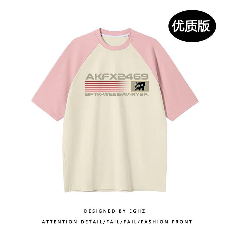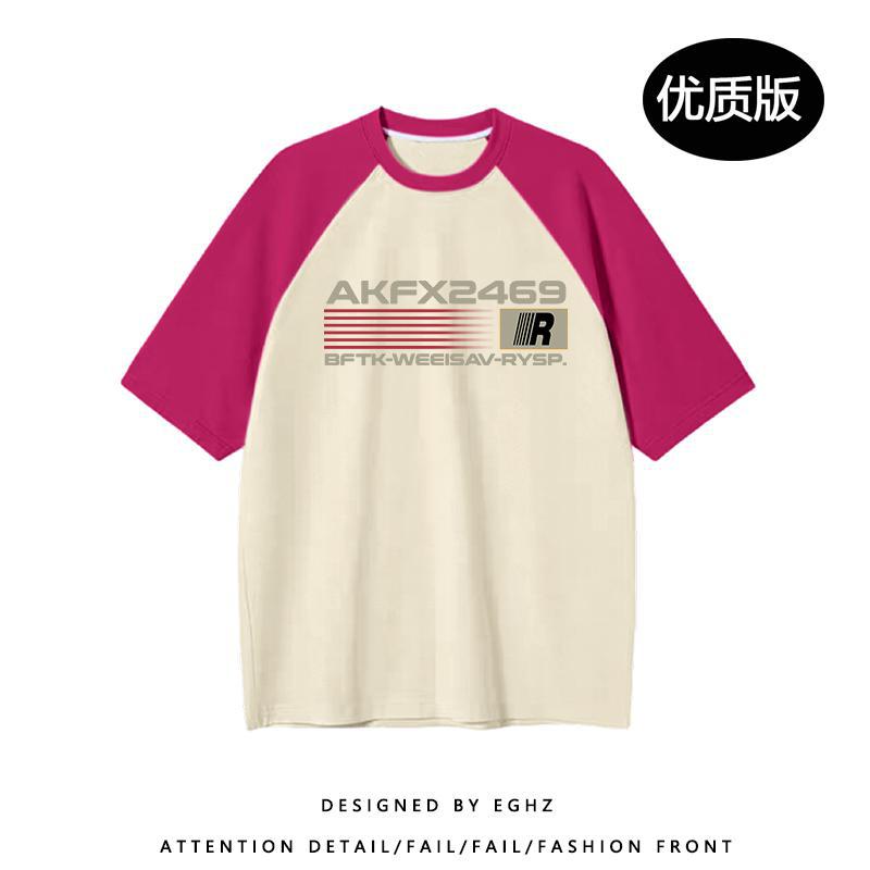 插肩独特短袖t恤女新款重磅半袖撞色拼接设计感oversize上衣