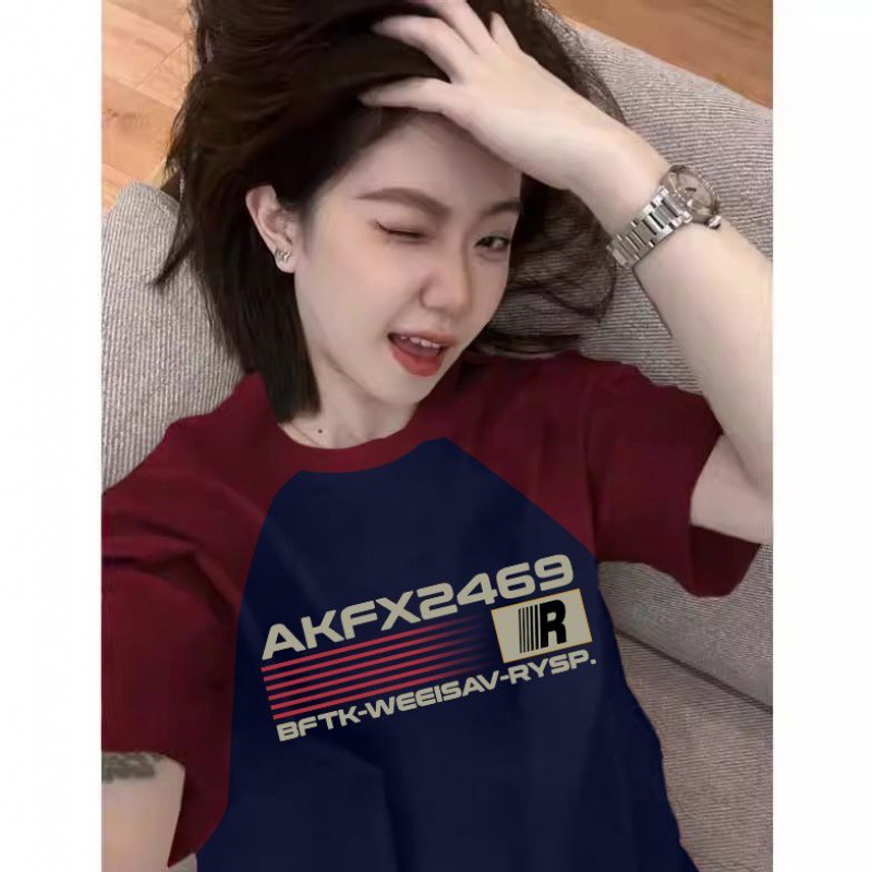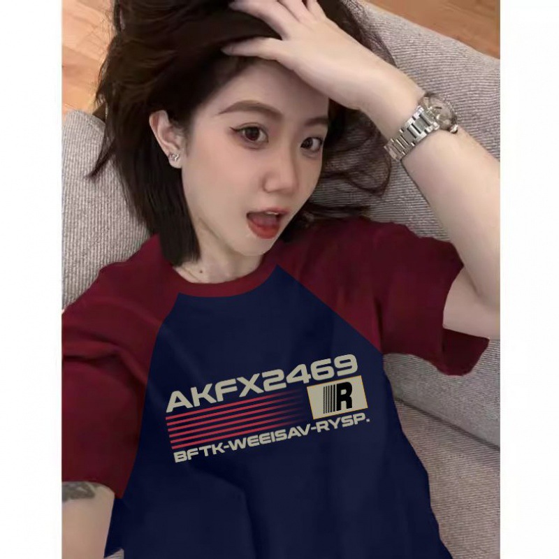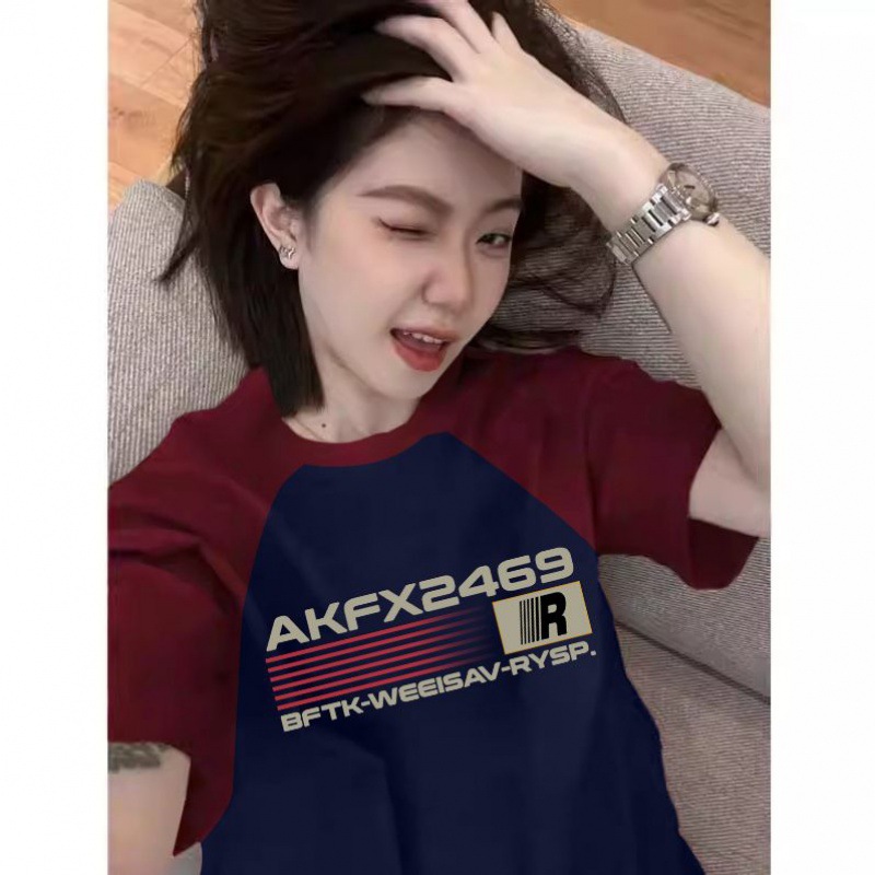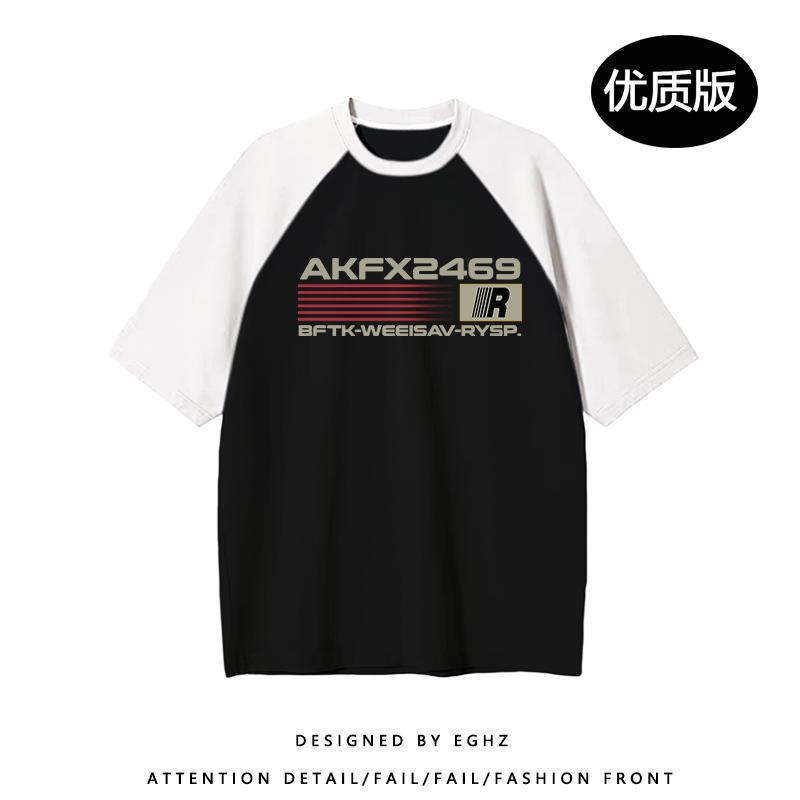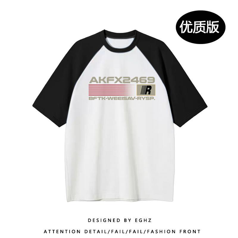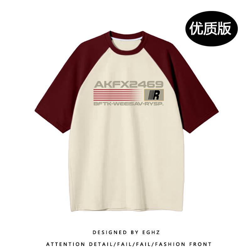 插肩独特短袖t恤女新款重磅半袖撞色拼接设计感oversize上衣