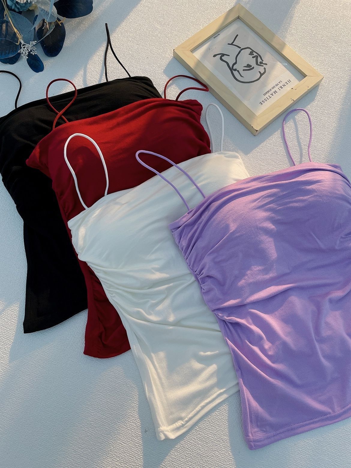 设计感露脐吊带背心女夏秋季新款带胸垫设计感显瘦打底内搭新款
